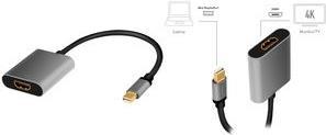 LogiLink CDA0110 DisplayPort Adapter mDP/M to HDMI/F,4K/60Hz, alu, black/grey, 0.15 m (CDA0110)
