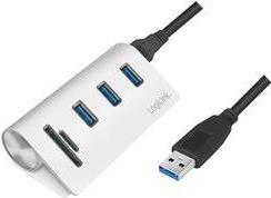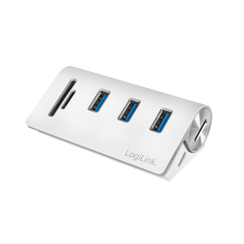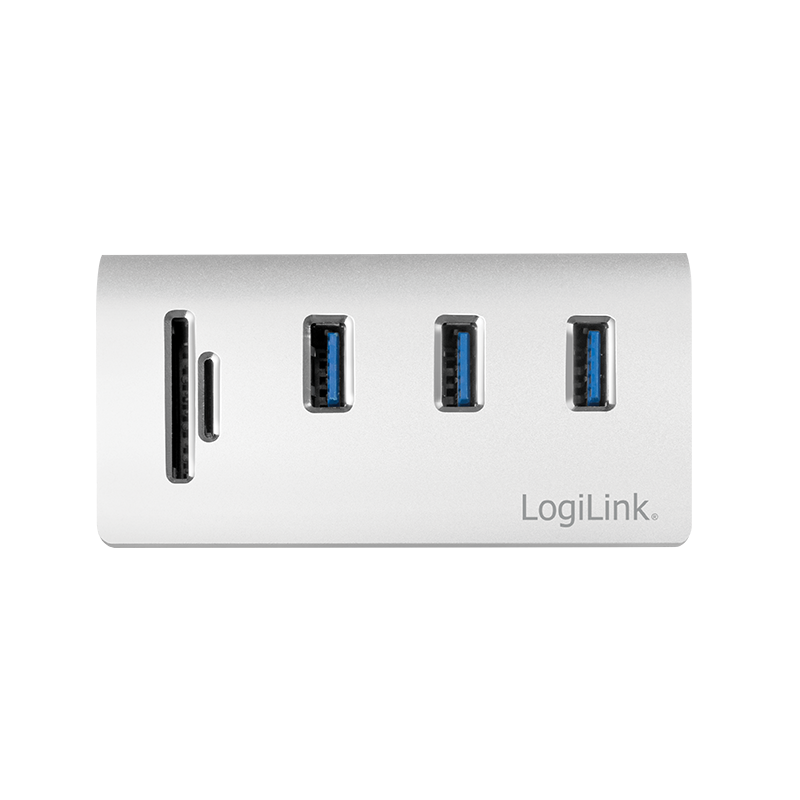 Ermöglicht den Anschluss eines Laptops mit Kartenleser über den USB 3.0 Anschluss und bietet zusätzliche 3 USB-Anschlüsse für die Verbindung mit anderen USB-Geräten.Produkttext[/head]Produktinformationen \"USB 3.0, 3-Port Hub, mit Kartenleser und Aluminiumgehäuse\" von LogiLinkDer 3-Port Hub CR0045 von LogiLink unterstützt den modernen USB 3.0-Standard und ermöglicht Ihnen so den Anschluss von bis zu 3 Geräten. Natürlich können Sie auch Geräte älterer USB Generationen anschließen und nutzen. Doch nicht nur das, denn durch den eingebauten Kartenleser, können Sie zudem auf Ihre Speicherkarten wie SD oder microSD- Karten zugreifen und übertragen! Dieser praktische und edel aussehende Hub im Aluminium-Design ist auf jedem Schreibtisch ein wahrer Hingucker. Einfacher Anschluss per Plug & Play. USB 3.0 Übertragungsraten von bis zu 5 GBit/s.Erweiterung mit 3 USB-Ports für Ihren Computer oder Laptop3x USB 3.0 Typ A, 1x USB 3.0 KabelEingebauter Kartenleser für SD- und microSD-KartenKompatibel zum USB 3.0 Standard, abwärtskompatibel zu USB 2.0/USB 1.1Übertragungsrate bis zu 5 Gbit/sKompatibel mit Mac OS / Windows / LinuxPlug & PlayFarbe: Silber[head]Hauptmerkmale