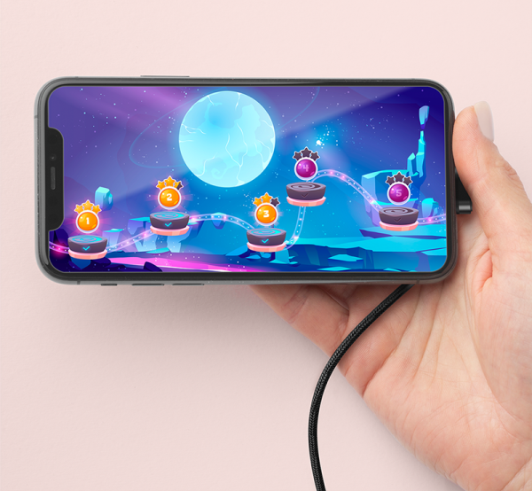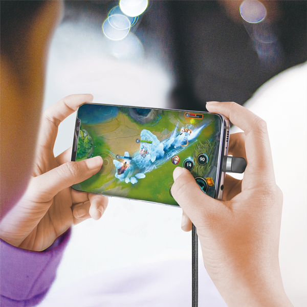 Dieses um 180° abgewinkelte USB-C-Gaming-Kabel ist ideal, um Ihr Smartphone oder Notebook mit einer Powerbank oder einem USB-Netzteil zu verbinden, ohne dass das Kabel Ihr Spielvergnügen beeinträchtigt. Laden Sie Ihr Gerät bequem und komfortabel während Ihrer Gaming-Session auf.