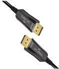 Dieses aktive DisplayPort AOC Hybrid-Glasfaserkabel eignet sich ideal, um unkomprimierte Video- und Audiodaten mit hoher Bandbreite über längere Distanzen zu übertragen. Durch die Hybrid-Konstruktion von Kupfer- und Glasfaserleitern sind elektromagnetische Einflüsse ausgeschlossen, dies gewährleistet eine verlustfreie Übertragung über die gesamte Kabellänge mit UHD-Auflösungen von bis zu 8K/60 Hz und Bandbreiten von bis zu 32,4 Gbit/s. Durch den Einsatz von optischen Leitern (Glasfaser) ist der Durchmesser dieses aktiven Kabels sehr gering und zeichnet sich durch sehr kleine Biegeradien sowie ein geringes Eigengewicht aus. Der ideale Einsatz für Heim, Meeting- oder Konferenzräume sowie innerhalb von Gebäuden stellen nur einige der Einsatzgebiete dar.