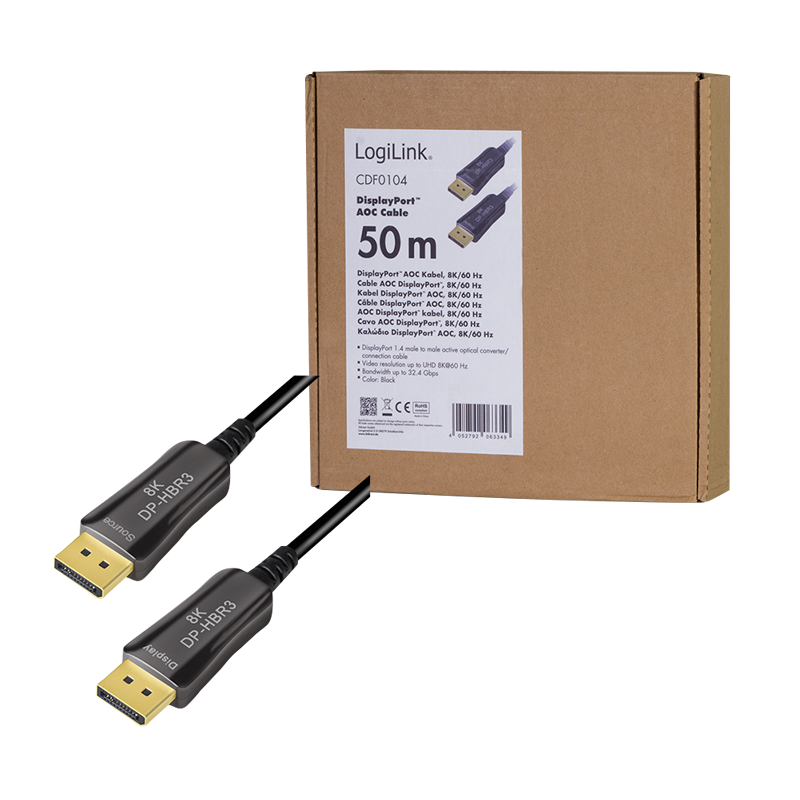 Logilink - DisplayPort-Kabel - DisplayPort (M) zu DisplayPort (M) - DisplayPort 1.4 - 50 m - Active Optical Cable (AOC), Support von 4K 120 Hz, unterstützt 8K 60 Hz (7680 x 4320) - Schwarz (CDF0104)