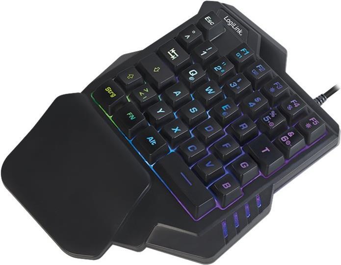 Logilink Illuminated one-hand gaming - Tastatur - hintergrundbeleuchtet - USB - Schwarz (ID0181)
