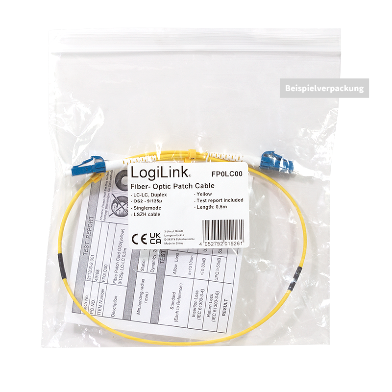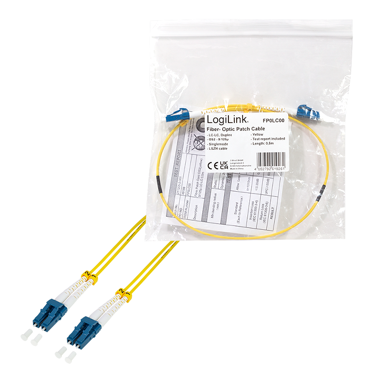 Das hochwertige Glasfaser-Patchkabel von LogiLink wird für nicht-permanente Verbindungen zwischen Patchfeldern und anderen Übertragungsgeräten verwendet und ermöglicht somit eine komplette \"Plug-and-Play\"-Lösung. Diese Variante ist mit hochwertigen LC/UPC Steckverbindern ausgerüstet. Jedes einzelne Kabel wird geprüft und mit einem Testprotokoll versehen, um eine zuverlässig hohe Übertragung zu gewährleisten. Die Glasfaser-Patchkabel von LogiLink erfüllen oder übertreffen die Standards für Einfüge- und Rückflusssdämpfung.Hauptmerkmale