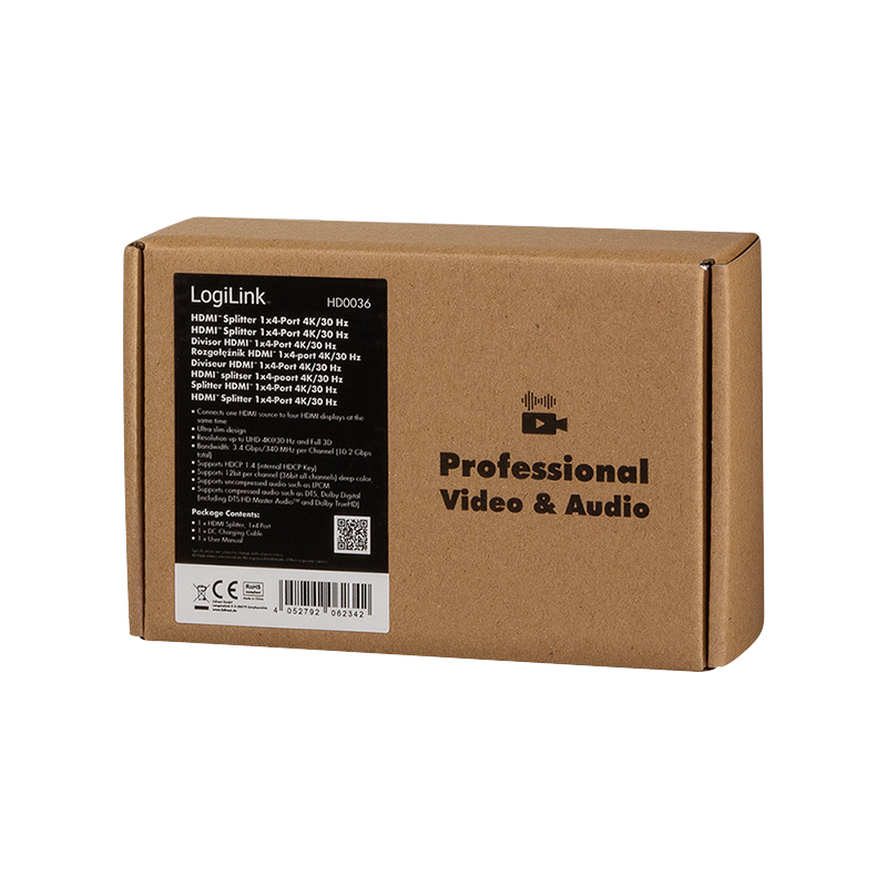Der LogiLink 4K-HDMI-Splitter verteilt das Signal Ihres HDMI-Gerätes auf bis zu vier Bildschirme, Fernseher oder Beamer in Ultra HD Auflösung. Lästiges Umstecken der Kabel gehört der Vergangenheit an. Er bietet die ideale Lösung für gewerbliche Anwendungen wie z. B. für Video-Wand-Präsentationen oder Produktdarstellungen (Büro-/Geschäftsräume, Messestände, Schaufenster, Wartezimmer, Gastronomie, etc.) sowohl als auch im privaten Bereich (Heimkino) mit CEC-Unterstützung. Egal ob Bilder, Präsentationen sowie Filme oder Spiele, mit diesem HDMI-Splitter erleben Sie Ihre Inhalte in ultrascharfer 4K UHD Auflösung mit bis zu 30 Hz. Mit Unterstützung von HDCP 1.4, 3D sowie einer Audio-Übertragung in LPCM 7.1, DTS, Dolby Digital, DTS-HD Master Audio und Dolby TrueHD erleben Sie eine ultrascharfe Videoqualität.