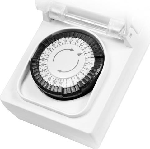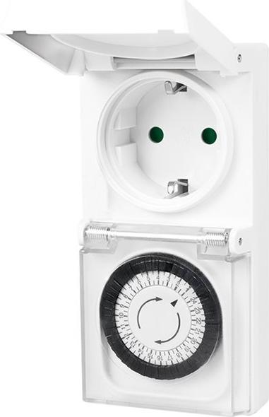 Merkmale Spritzwassergeschützt, bis 3680 Watt, 30 Minuten Einstellung Timer, bis zu 16 A, Schutzabdeckung, mechanisches Timer-Drehrad