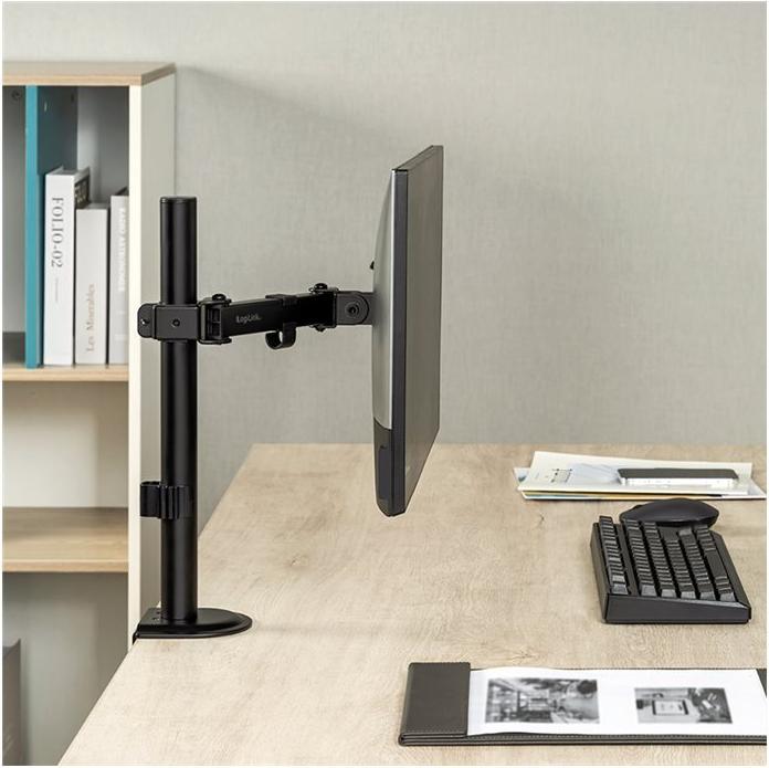 LogiLink Monitorarm, Armlänge: 200 mm, schwarz mit Tischklemme, Tragkraft: 9 kg, aus schwarzem Stahl, - 1 Stück (BP0170)