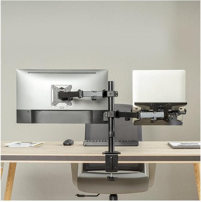 LogiLink Befestigungskit - einstellbarer Doppelarm - für 2 LCD-Displays oder LCD-Display und Notebook - Schwarz |