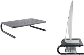 Ideal für die Maximierung des vorhandenen Platzes an einem beengten Arbeitsplatz. Der Bildschirm wird zudem auf Augenhöhe angehoben und was Hals- und Schulterbelastungen vorgebeugt.