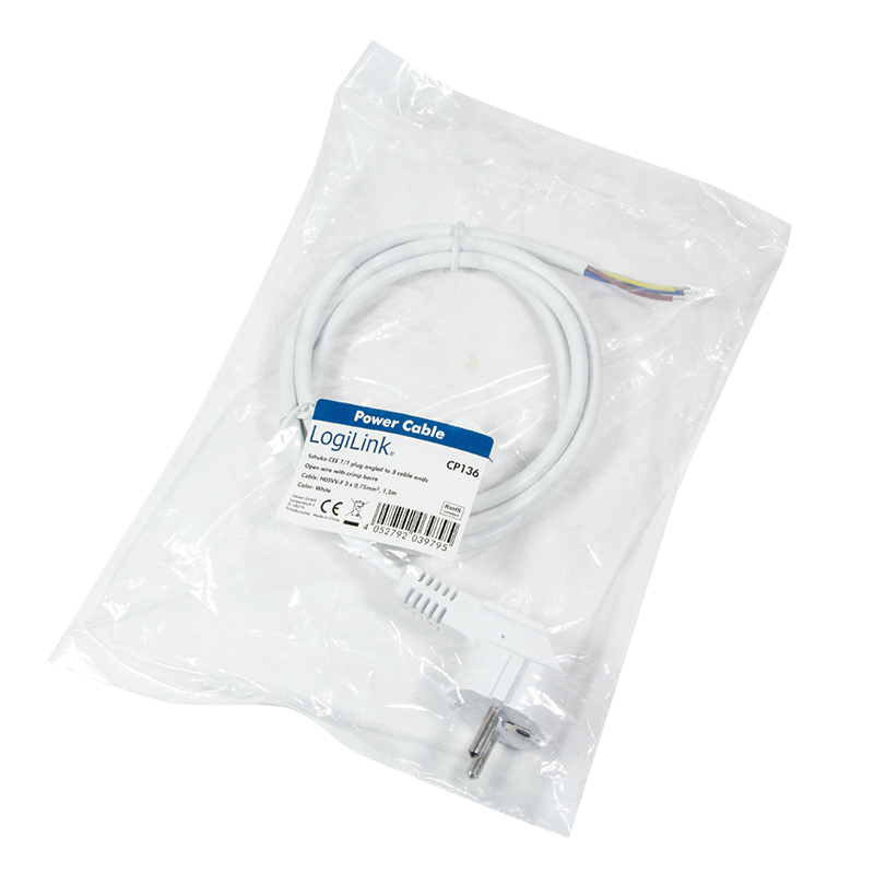 Logilink - Stromkabel - CEE 7/7 (M) bis ohne Stecker - Wechselstrom 250 V - 1.5 m - weiß (CP136)