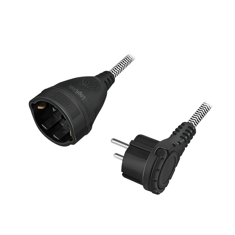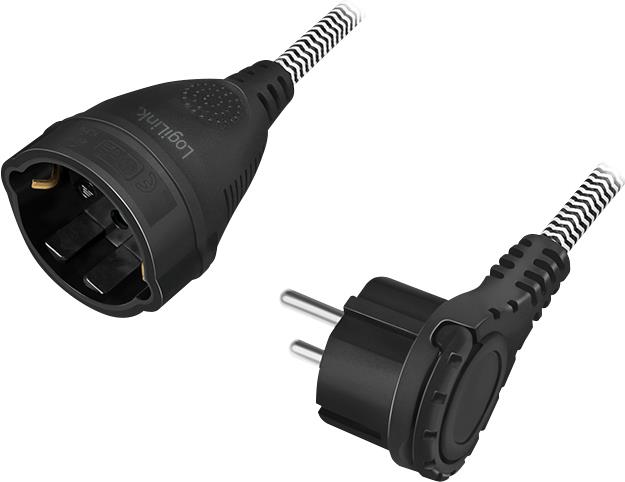 LogiLink - Spannungsversorgungs-Verlängerungskabel - CEE 7/7 (S) gewinkelt bis CEE 7/3 (W) - Wechselstrom 250 V - 16 A - 3 m - Schwarz, weiß (Kabel)