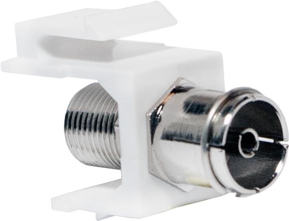 IEC auf F-Verbinder Multimedia Durchführungskupplung zum Einbau in Keystone Panels oder Anschlussdosen. Einfache Einrastmontage, das Modul ist beidseitig mit einer Anschlussbuchse versehen, sodass die Kabel direkt eingesteckt werden können. Eignet sich auch einfach zur Verlängerung zweier Kabel.