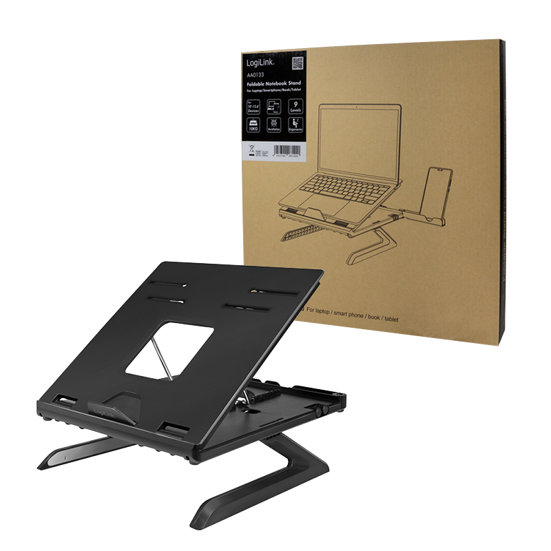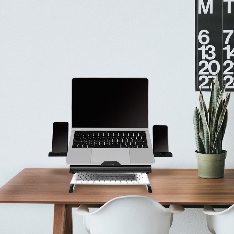 LogiLink Notebook-Ständer mit Smartphone-Halterungen schwarz, für Notebooks von 25,40 - 39,62 cm (10"-15.6"), - 1 Stück (AA0133)