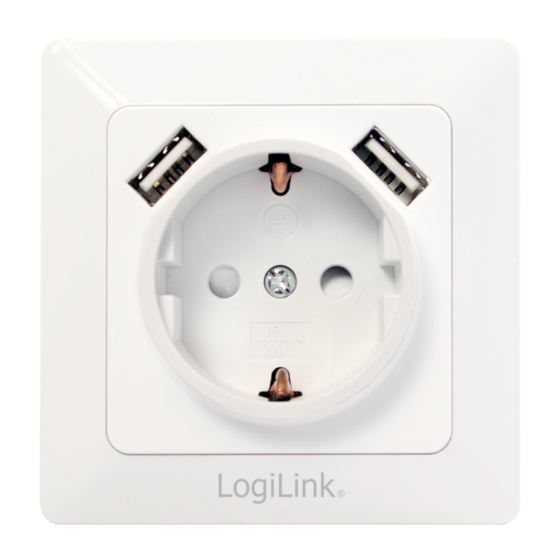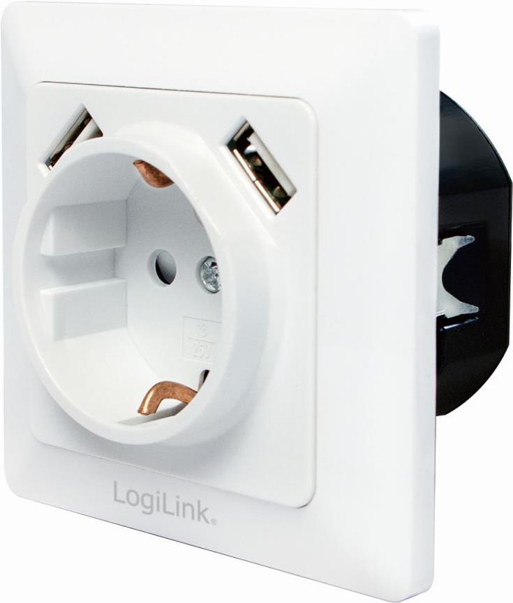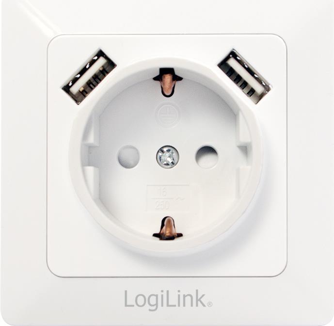 LogiLink PA0162 Steckdose 2 x USB + CEE 7/3 Weiß (PA0162)