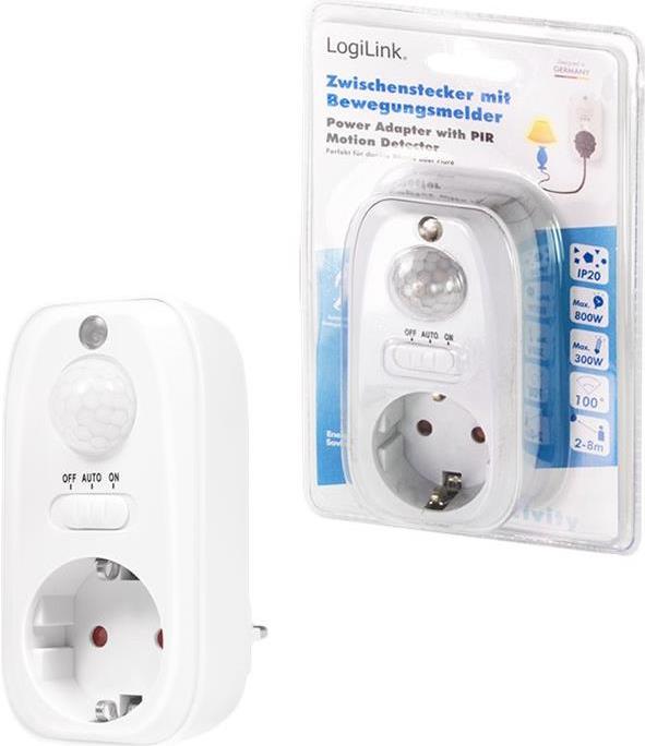 Das Licht soll automatisch angehen, wenn es dunkel ist und der Bewegungsmelder eine Bewegung erkennt, z. B. im Flur, Treppenhaus oder in einer Garage? Dann nutzen Sie den Steckdosenadapter mit Licht- und PIR-Sensor von LogiLink. Stecken Sie dafür den PA0248 einfach in die Steckdose und den Stecker des einzuschaltenden Gerätes - wie etwa einer Stehlampe - in den Adapter. Ist die Umgebung dunkel genug (ab einer Beleuchtungsstärke < 5 Lux) und erfasst der PIR-Sensor in seinem 100° Erfassungsbereich eine Bewegung (in bis zu 8 m Entfernung), schaltet sich die Steckdose ein.