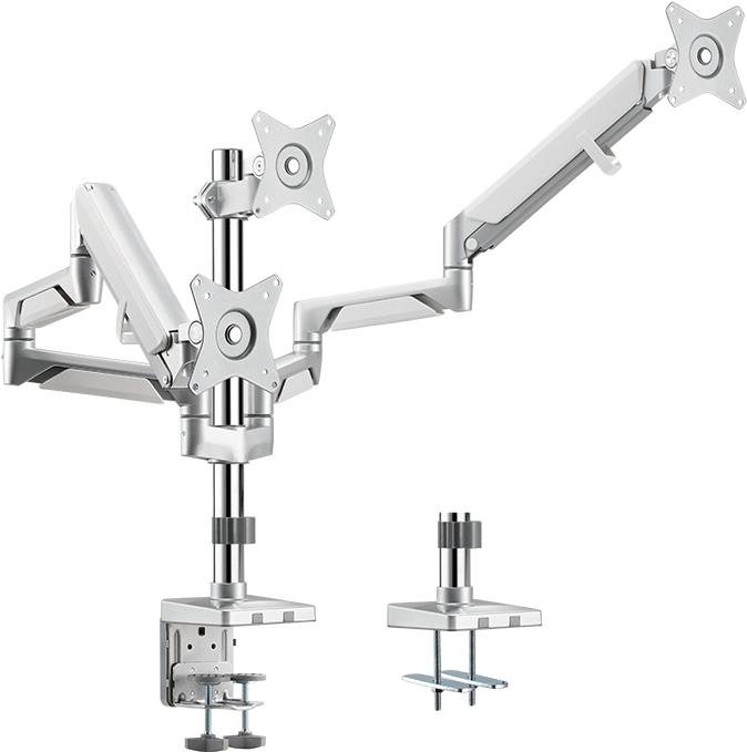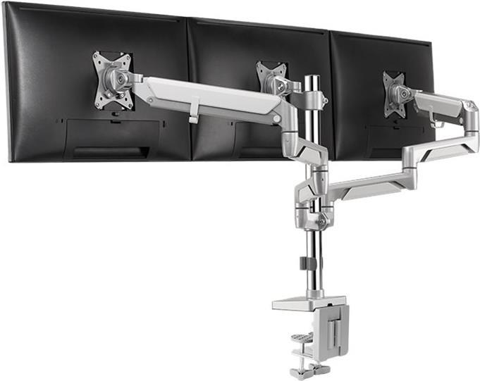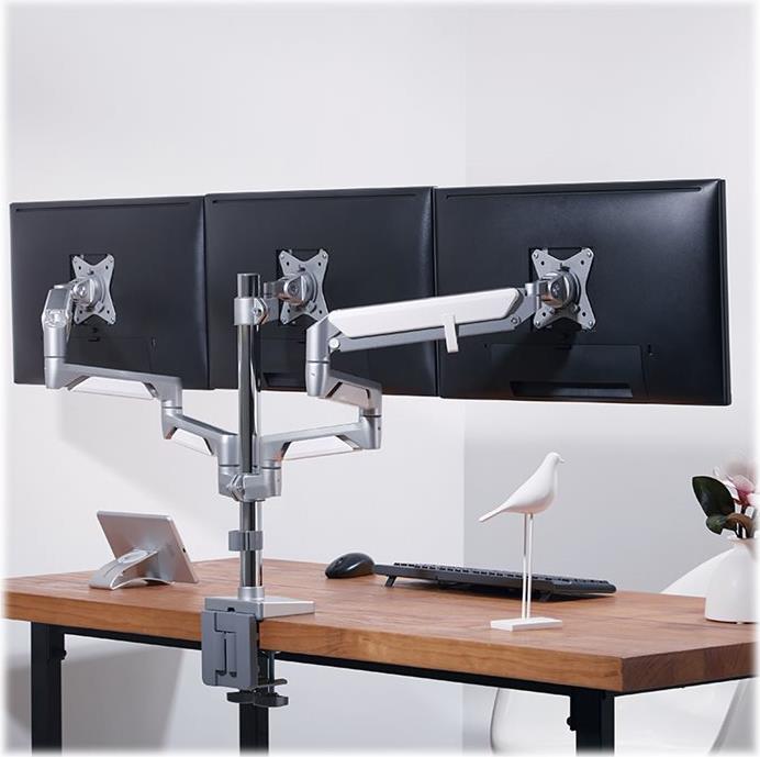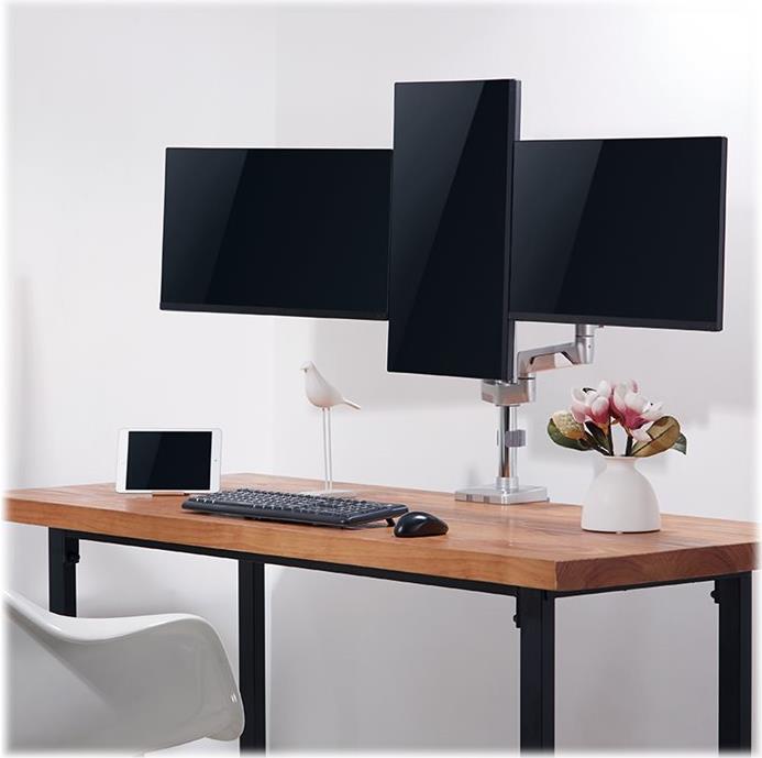 Befestigen Sie Ihre drei TV- und Computer-Monitore direkt am Schreibtisch. So können Sie auch dort Ihre Bildschirme mit voller Bewegungsfreiheit nutzen und sie nach Belieben neigen, schwenken oder drehen. Außerdem haben Sie die Möglichkeit den Arm in der Höhe zu verstellen, um Ihnen eine neue Dimension des visuellen Komforts zu ermöglichen. Die LogiLink Halterung eignet sich für drei flache als auch für curved Monitore.