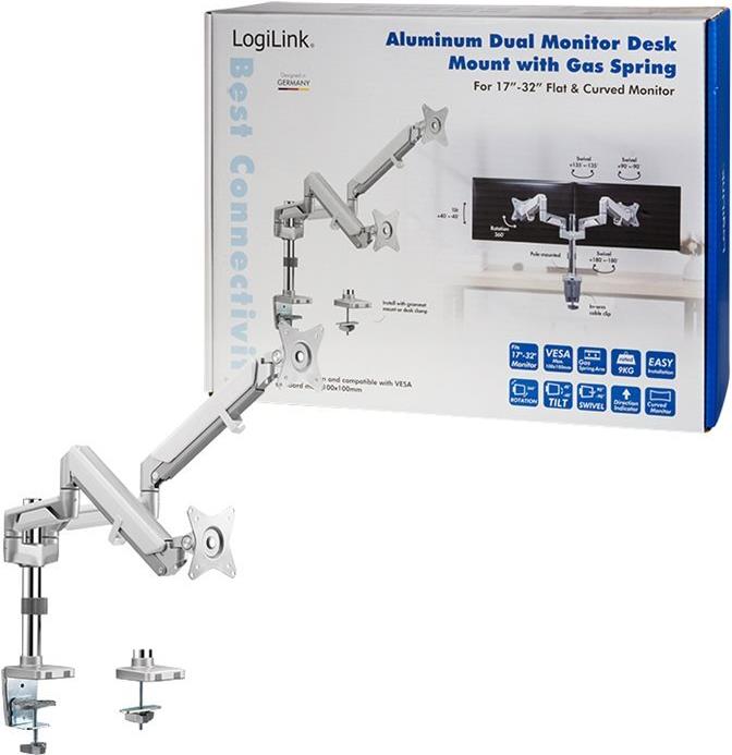 LogiLink - Tischhalterung (einstellbarer Arm) - Kunststoff, Aluminium, Stahl - Bildschirmgröße: 43.2-81.3 cm (17"-32")