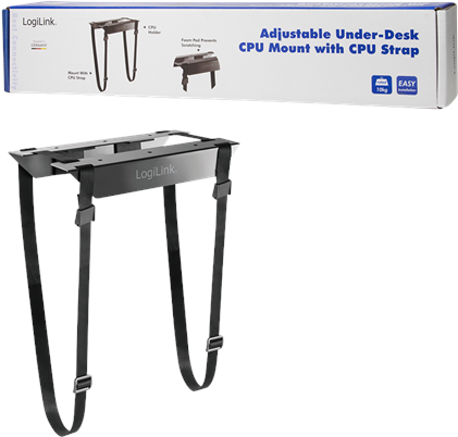 Befestigen Sie Ihren Computer direkt unter dem Schreibtisch und sparen Sie mehr Platz in Ihrem Arbeitsbereich. LogiLink’s verstellbare Computer-Halterung mit Schlaufe sorgt für einen sicheren Halt, schützt Ihr Gerät vor dem Herunterfallen und verbirgt es unter Ihrem Schreibtisch. Mit weniger Platz zwischen Ihrem Computer und der Tischplatte bleibt er sogar fast völlig staubfrei. Auch für den waagerechten Einsatz geeignet.