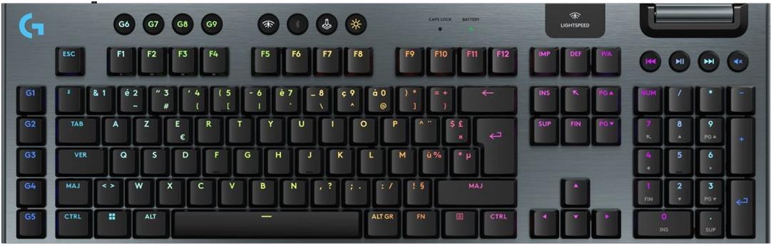Logitech G G915 X - Tastatur - LIGHTSPEED - Hintergrundbeleuchtung - kabellos - Bluetooth 5,0, 2,4 GHz, USB - AZERTY - Französisch - Tastenschalter: GL Tactile - Schwarz (920-012672)