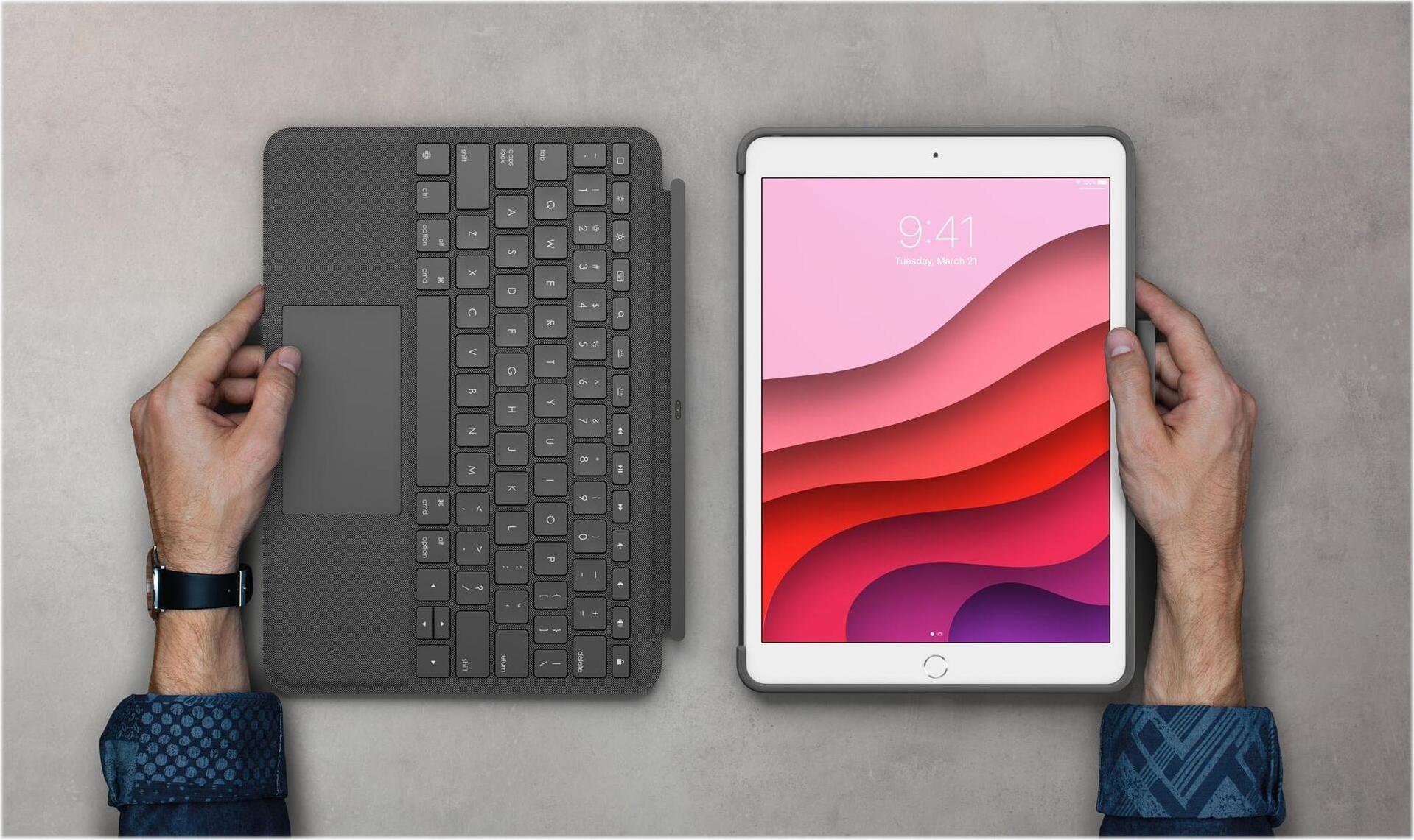Logitech Combo Touch - Tastatur und Foliohülle - mit Trackpad - hintergrundbeleuchtet - Apple Smart connector - Deutsch - Graphite - für Apple 10.2" iPad (7. Generation & 9. Generation); 10.5" iPad Air; 10.5" iPad Pro (920-009624) (geöffnet)