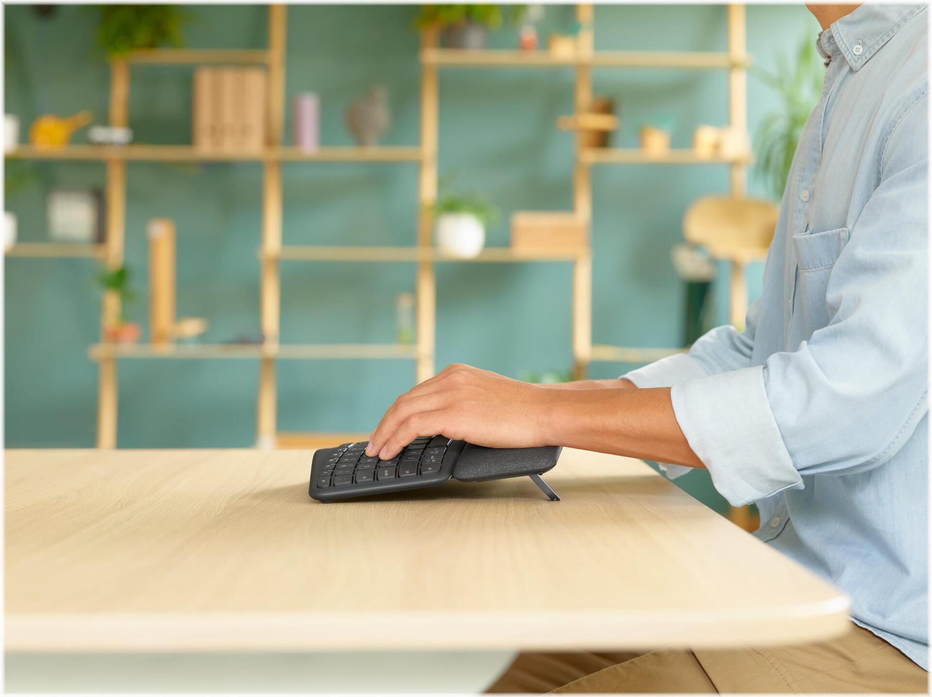 Wir präsentieren: ERGO K860, eine geteilte ergonomische Tastatur, speziell entwickelt für eine bessere Haltung, weniger Muskelanspannung und mehr Unterstützung. Tippen Sie ergonomischer auf einer geteilten Tastatur mit geschwungener Form, die zu einer besseren Haltung beiträgt.