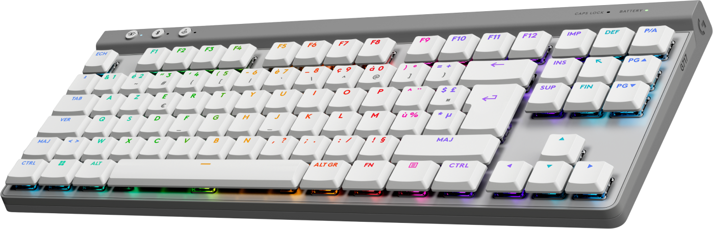 Logitech G G515 - Tastatur - LIGHTSPEED - TKL - Hintergrundbeleuchtung - USB, Bluetooth, 2.4 GHz - AZERTY - Französisch - Tastenschalter: GL Tactile - weiß (920-012547)