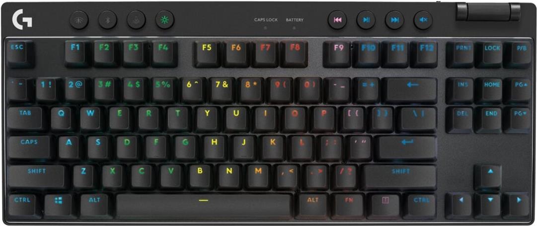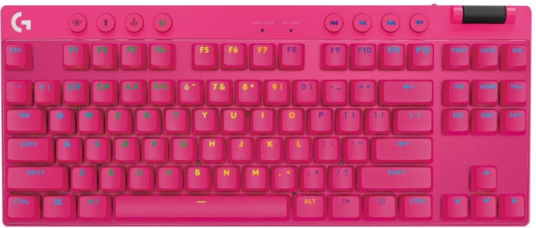 Logitech G PRO X TKL - Tastatur - Hintergrundbeleuchtung - kabellos - 2,4 GHz, Bluetooth - QWERTY - US International - Tastenschalter: Tactile - pink (920-012159)