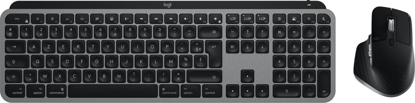 Logitech Master Series MX Keys S Combo for Mac - Tastatur-und-Maus-Set - full size - hinterleuchtet - kabellos - Bluetooth LE - AZERTY - Französisch - Space-grau (920-012841)