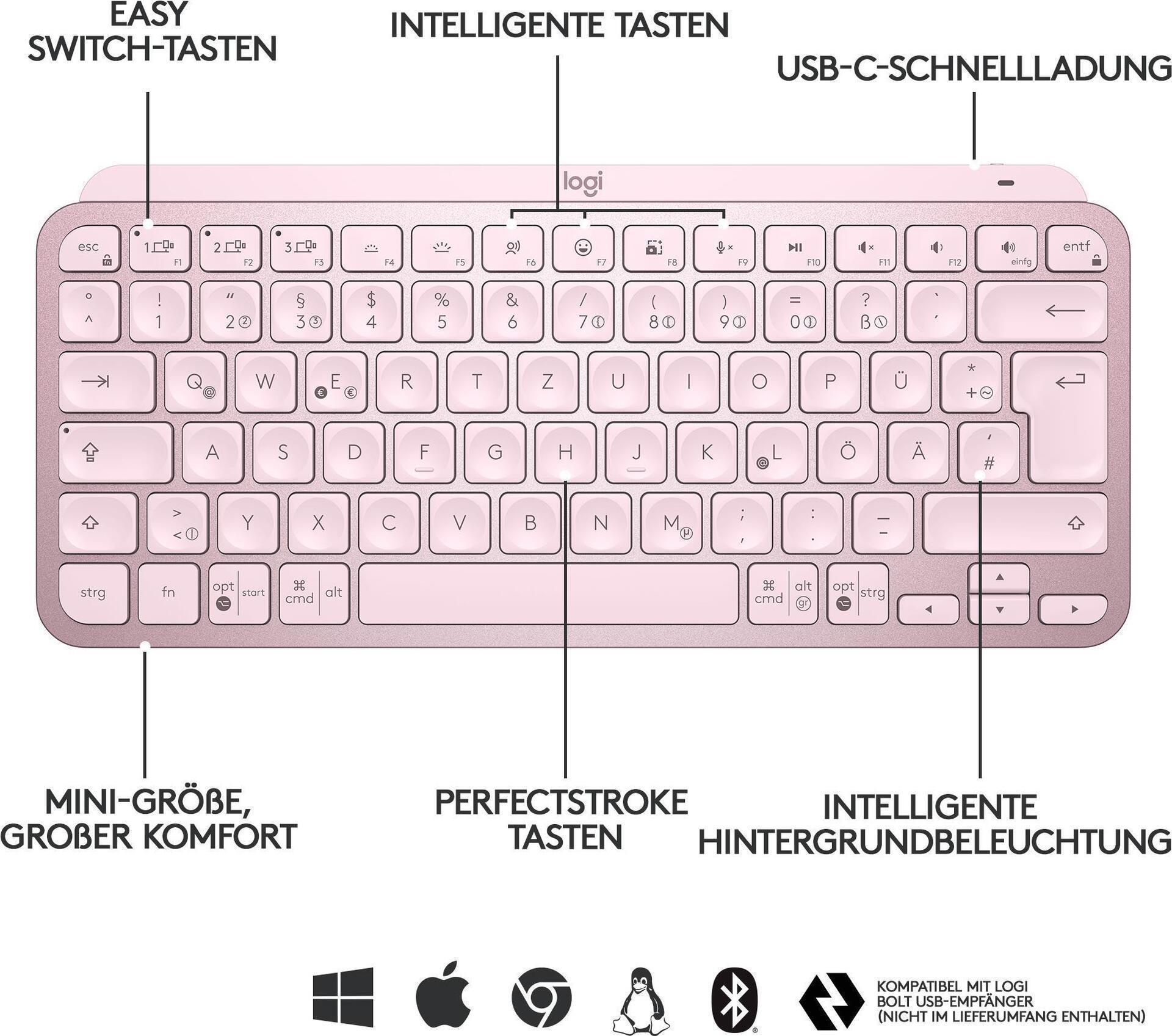 Logitech MX Keys Mini - Tastatur - hinterleuchtet - Bluetooth - QWERTZ - Deutsch - rosé (920-010481)