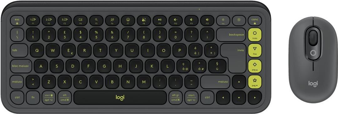 Logitech POP Icon Combo - Tastatur-und-Maus-Set - kabellos - Bluetooth LE - QWERTY - Italienisch - Graphite, grün (920-013115)
