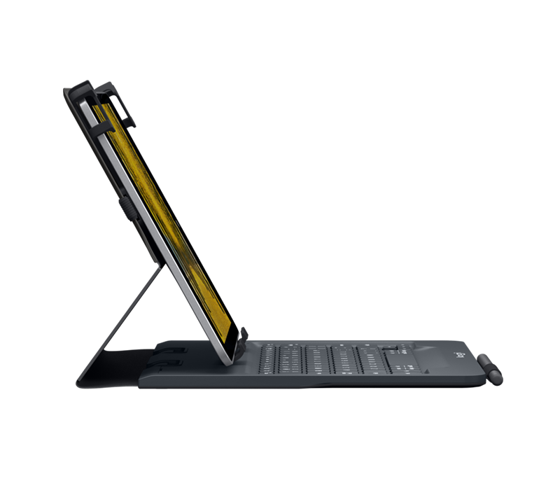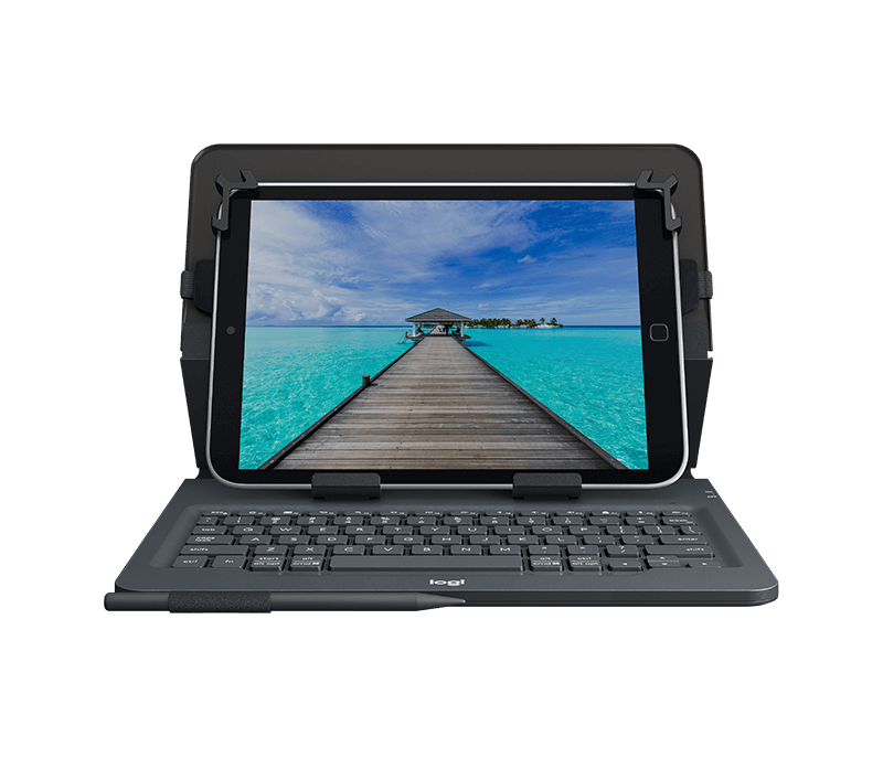 Mit Universal Folio genießen Sie auf Ihrem Tablet überall denselben Tippkomfort wie auf einem Notebook. Das Universal Folio hält 9–10-Zoll-Tablets im optimalen Winkel zum Tippen fest – auf jeder Oberfläche, ob Café-Tisch, Schreibtisch oder Ihrem Schoß.