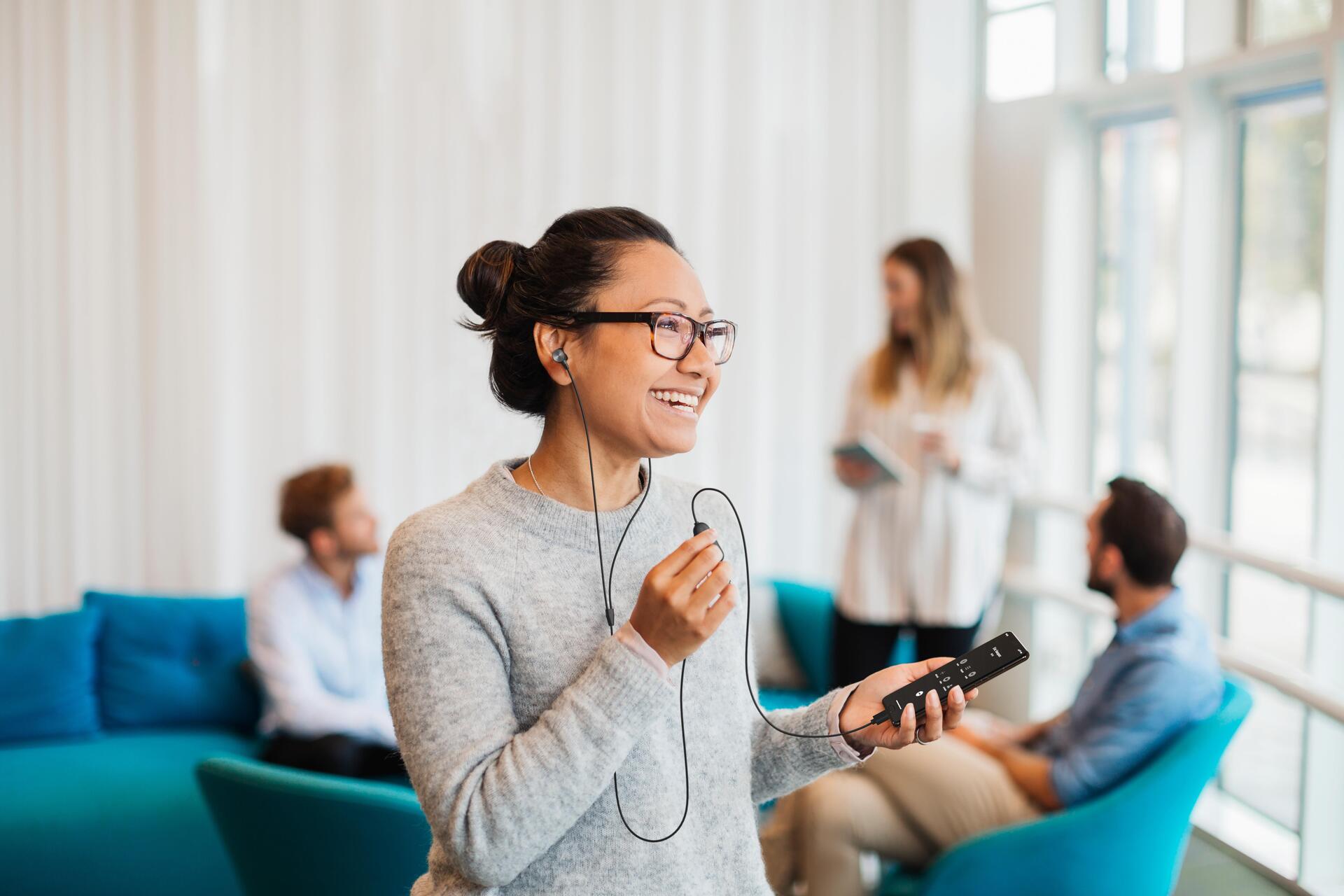 Präsentieren Sie sich optimal in Bild und Ton in Videobesprechungen mit den Zone Wired Earbuds. Fortschrittliche geräuschunterdrückende Mikrofone am linken Earbud erfassen jedes Ihrer Worte klar und deutlich. Mit In-Ear-Sound in Studioqualität.