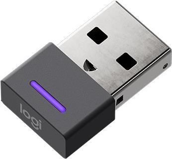 Lassen Sie diesen kompakten Empfänger am Notebook und nehmen Sie ihn mit, egal wohin Sie gehen. Dies reduziert das Risiko, dass der Empfänger beschädigt wird, verlegt wird oder verloren geht, erheblich. Der Empfänger stellt automatisch eine Verbindung her, wenn Sie Ihr Headset und Ihren Computer einschalten. Die LED-Leuchte zeigt an, dass die Verbindung aktiv ist.