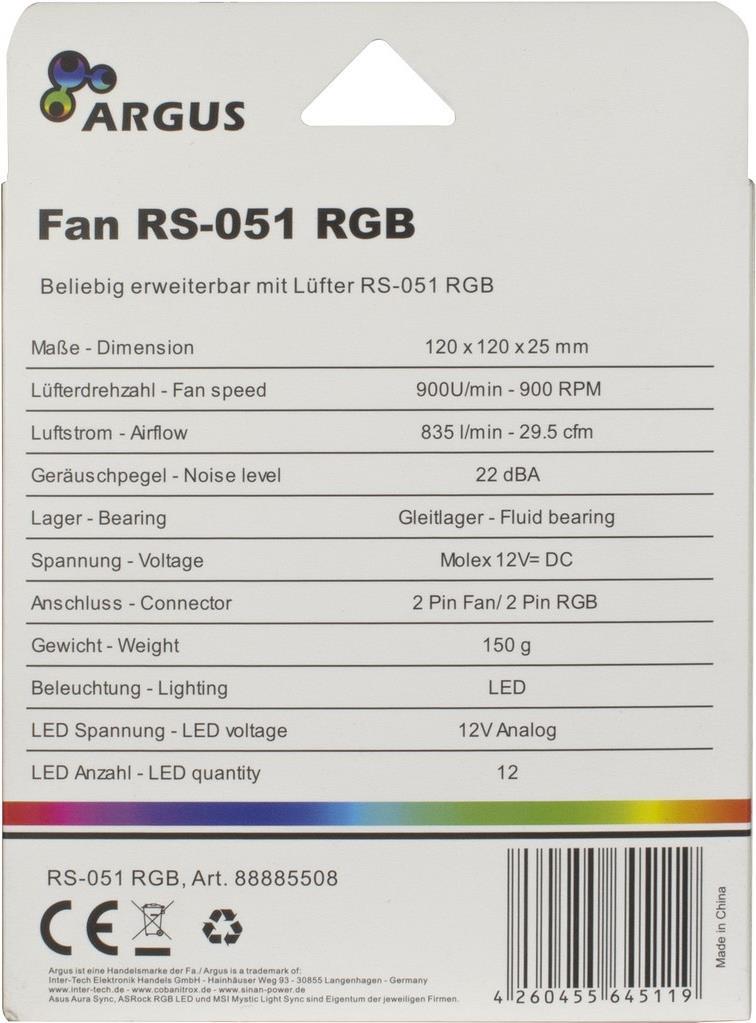 Inter-Tech Argus RS-051 RGB Computergehäuse Ventilator 12 cm Schwarz (88885508)