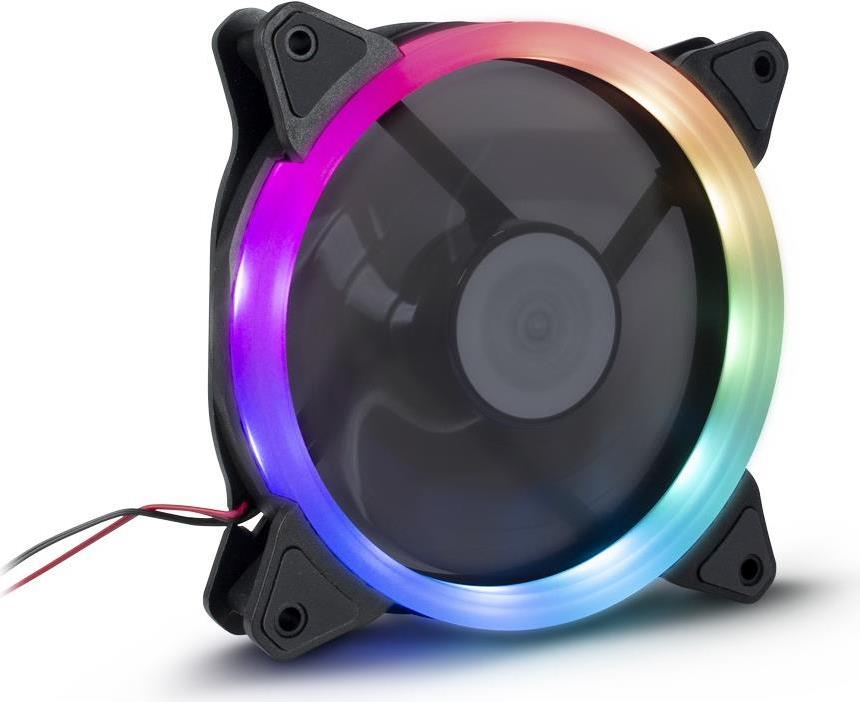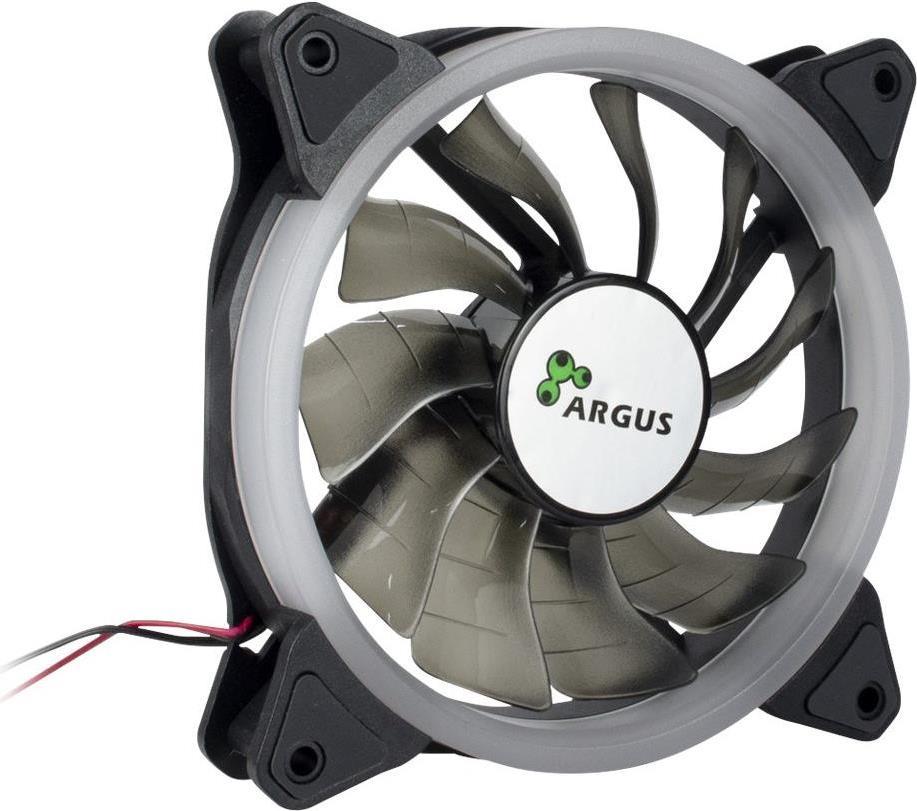 Der laufruhige 120mm RGB LED-Lüfter von Argus bietet mit seinen insgesamt 12 RGB-LEDs, die sich hinter einem halbtransparenten Ring befinden, einen stylischen Effekt. Gummierte Auflagen in den Lüfterecken, auf beiden Seiten des Lüfters, sorgen für einen vibrationsfreien Betrieb und lassen die Option offen, ob der Lüfter kühle Luft ansaugen oder die warme Luft aus dem Gehäuse pusten soll.Der Anschluss erfolgt über einen 2pin, der beispielsweise mit dem Reset-Schalter des Gehäuses verbunden wird, und macht so unabhängig von Mainboards mit RGB-Headern, was den Lüfter mit nahezu jedem Gehäuse und System kompatibel macht. Der Lüfter lässt sich wahlweise einzeln oder mit einer Vielzahl an weiteren RS-051 kombinieren und synchron schalten.Produkttext[/head]Der laufruhige 120mm RGB LED-Lüfter von Argus bietet mit seinen insgesamt 12 RGB-LEDs, die sich hinter einem halbtransparenten Ring befinden, einen stylischen Effekt. Gummierte Auflagen in den Lüfterecken, auf beiden Seiten des Lüfters, sorgen für einen vibrationsfreien Betrieb und lassen die Option offen, ob der Lüfter kühle Luft ansaugen oder die warme Luft aus dem Gehäuse pusten soll.Der Anschluss erfolgt über einen 2pin, der beispielsweise mit dem Reset-Schalter des Gehäuses verbunden wird, und macht so unabhängig von Mainboards mit RGB-Headern, was den Lüfter mit nahezu jedem Gehäuse und System kompatibel macht. Der Lüfter lässt sich wahlweise einzeln oder mit einer Vielzahl an weiteren RS-051 kombinieren und synchron schalten.[head]Hauptmerkmale