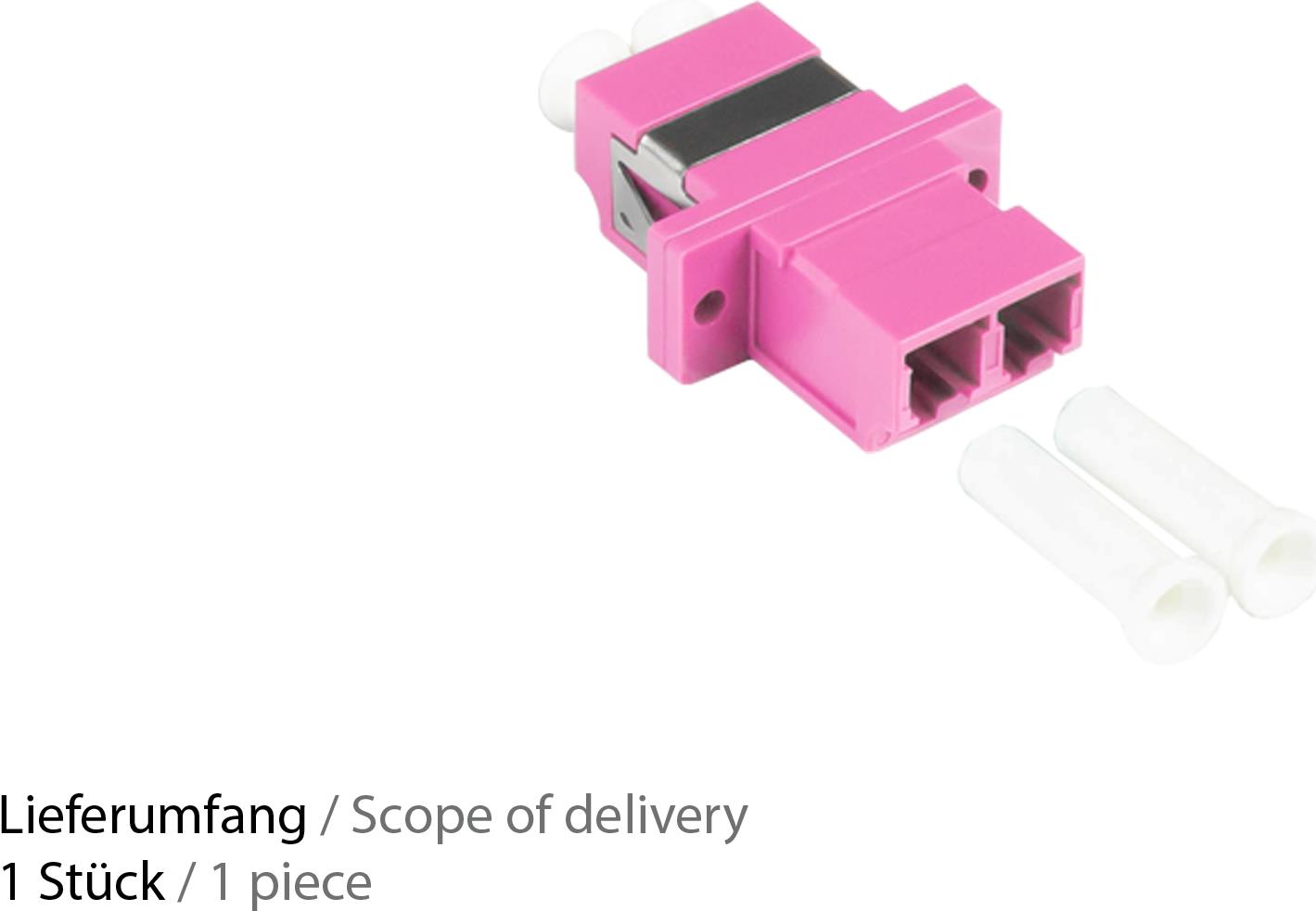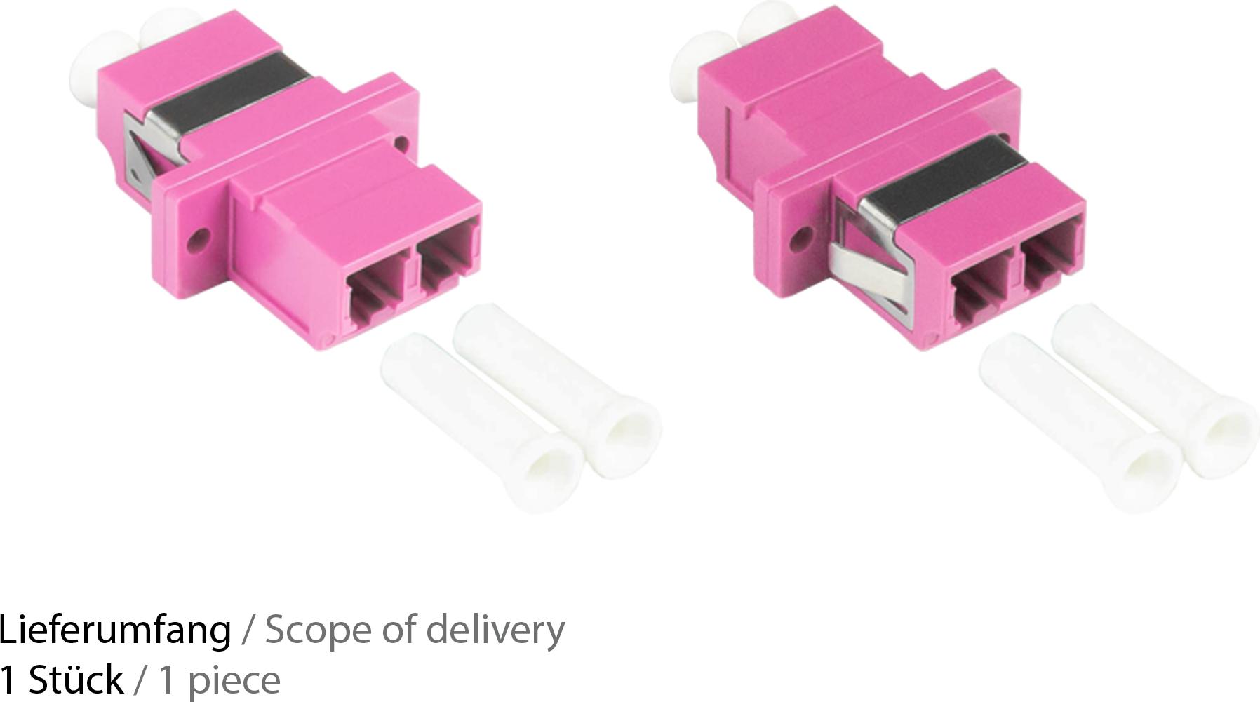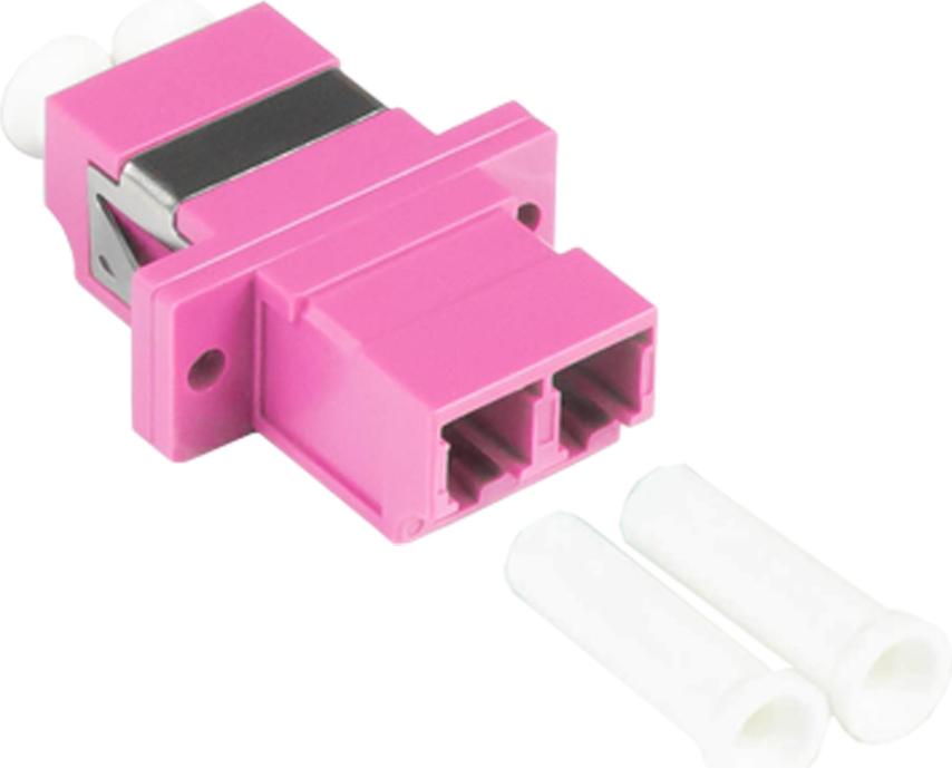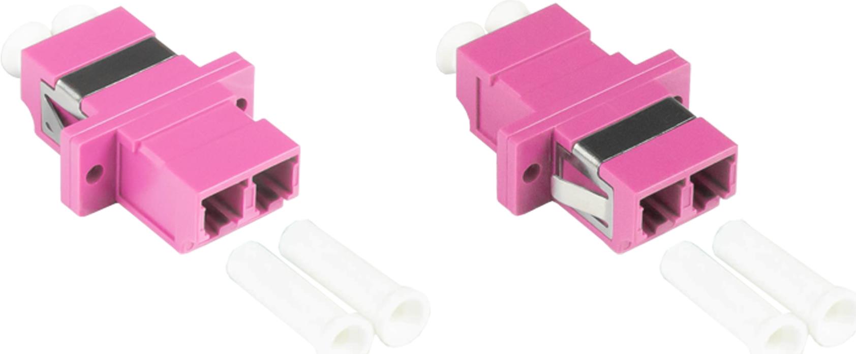 LWL Duplex Kupplung, LC (UPC) an LC (UPC), OM4, Multimode, Kunststoffgehäuse mit Flansch, Keramikhülse, violett, Good Connections® (LW-K204)