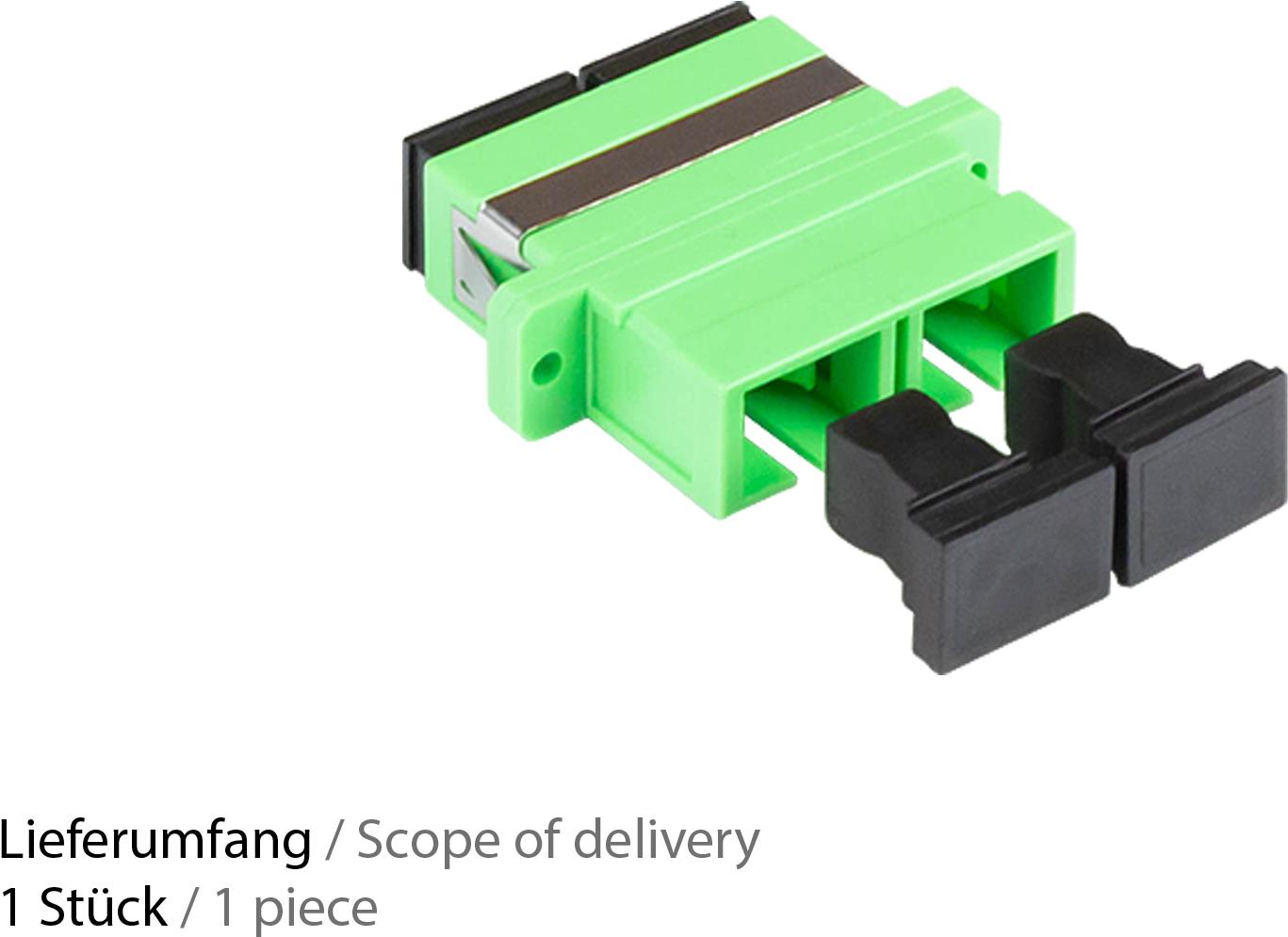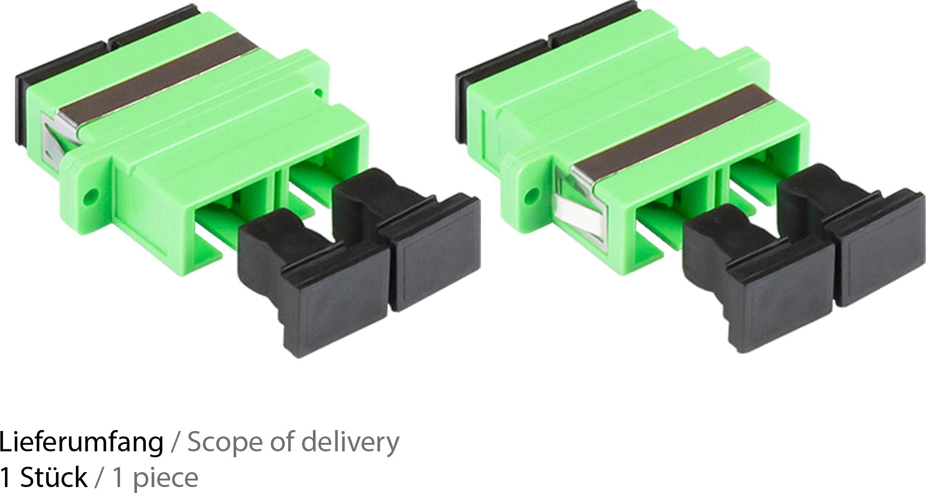 LWL Duplex Kupplung, SC (APC) an SC (APC), OS2, Singlemode, Kunststoffgehäuse mit Flansch, Keramikhülse, grün, Good Connections® (LW-K205)