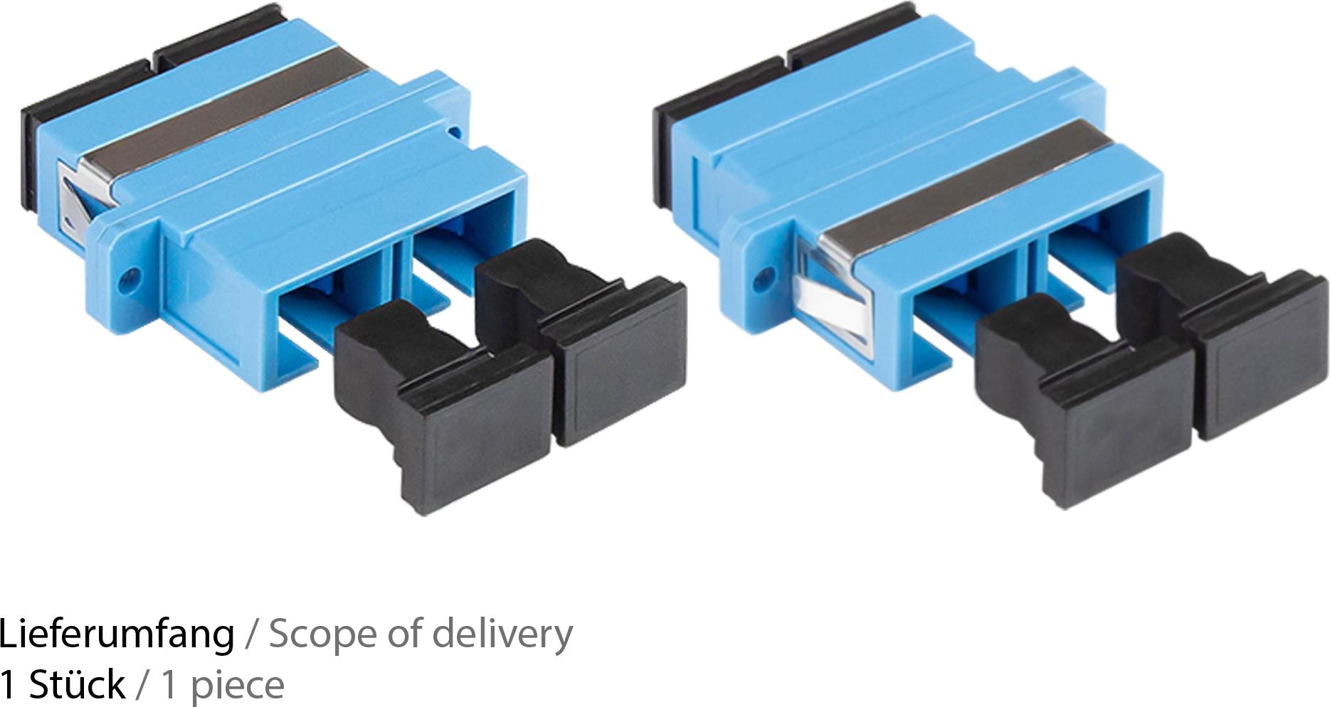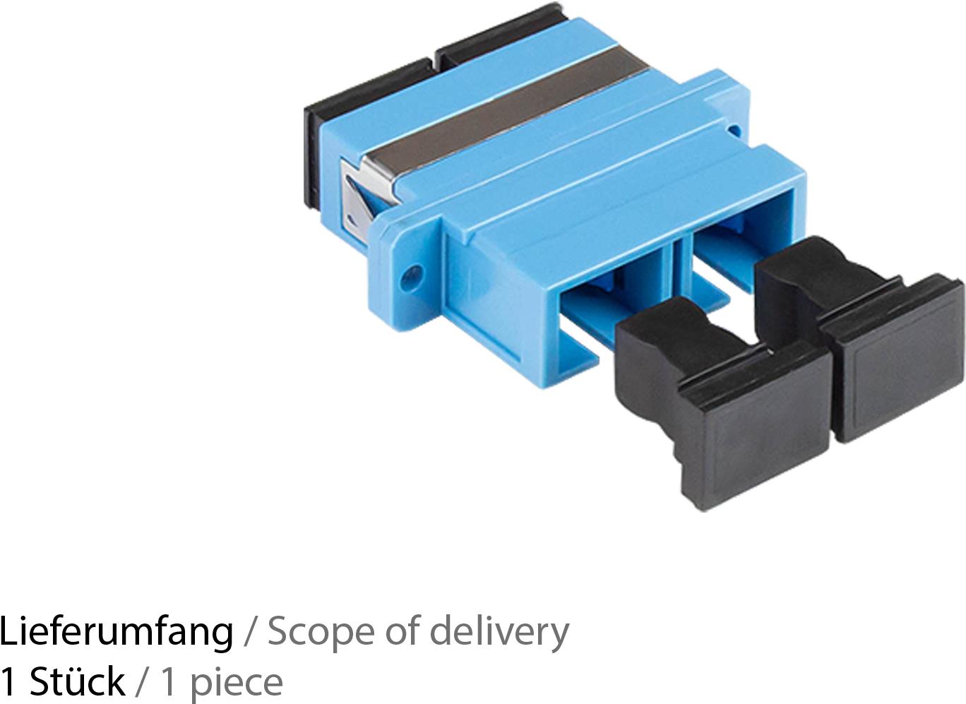 LWL Duplex Kupplung, SC (UPC) an SC (UPC), OS2, Singlemode, Kunststoffgehäuse mit Flansch, Keramikhülse, blau, Good Connections® (LW-K206)