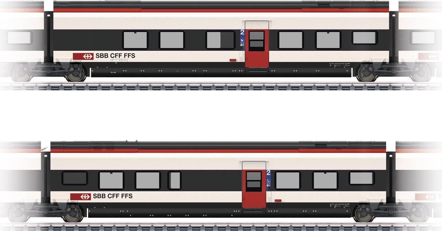 2-teiliges Ergänzungswagen-Set zur Erweiterung des Hochgeschwindigkeits-Triebzuges RABe 501 "Giruno" auf eine 11-teilige Einheit. Serienmäßig eingebaute Innenbeleuchtung mit wartungsfreien warmweißen Leuchtdioden (LED). ...