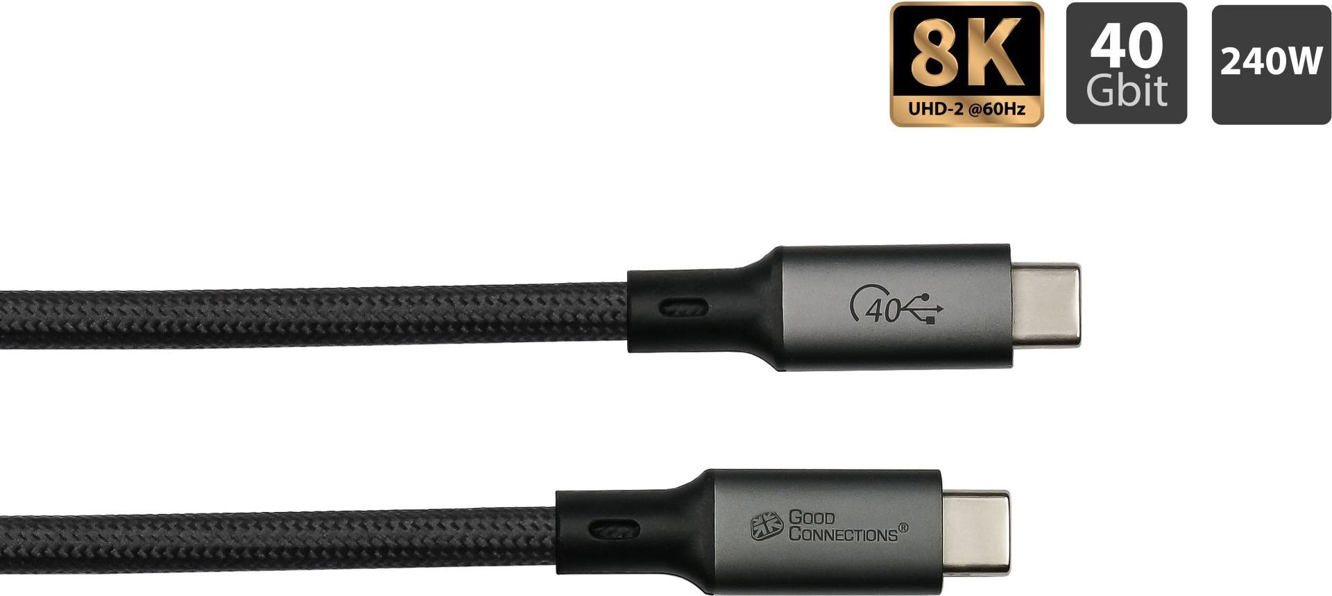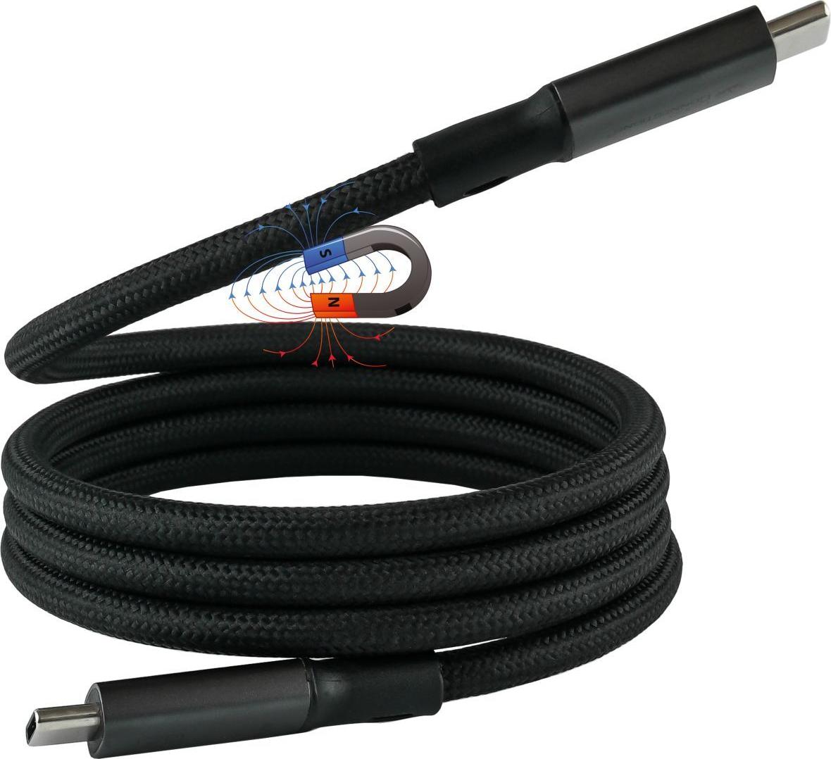 • Magnetisches USB 4.0 Gen. 3x2 Spiralkabel (40GBit/s, 240W, 8K@60Hz), USB-Câ„¢ Stecker an USB-Câ„¢ Stecker, schwarz, 1,5m, Good Connections (2404-MT015S)