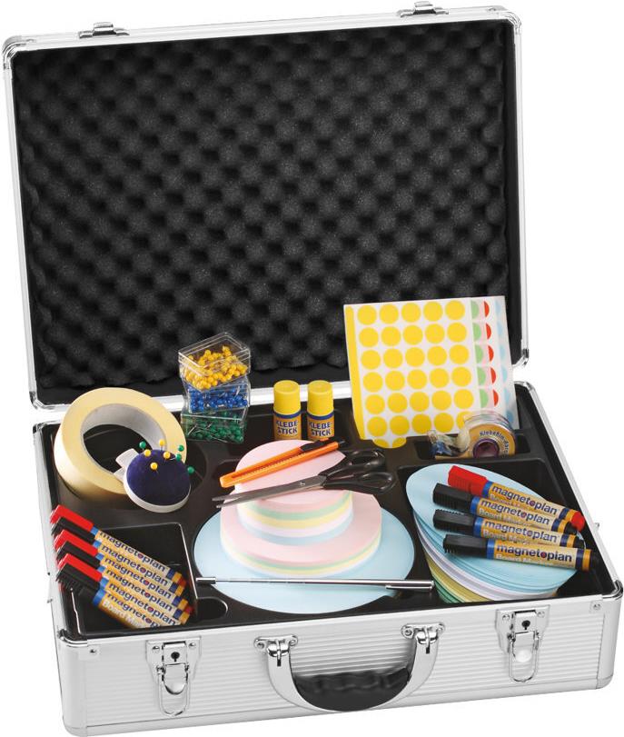Moderationskoffer Kompakt ist der ideale Moderationskoffer mit umfangreichem Zubehör für Schulung und Seminar.