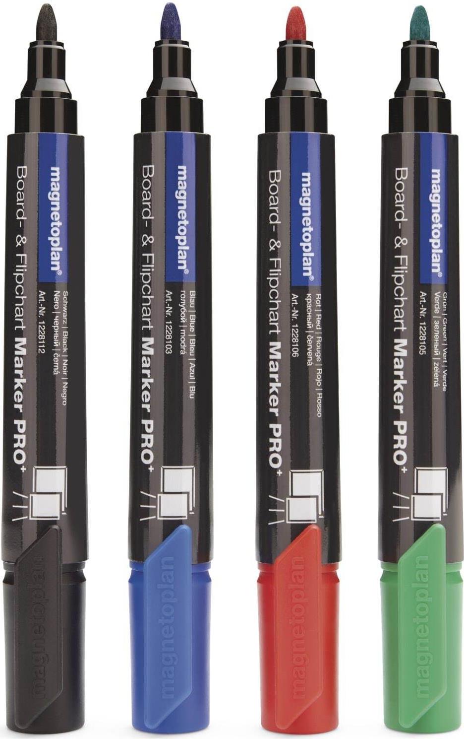magnetoplan Board- und Flipchartmarker PRO+. Die innovativen Marker schreiben nicht nur auf Whiteboard-Oberflächen, sondern auch auf Flipchart-Papier.