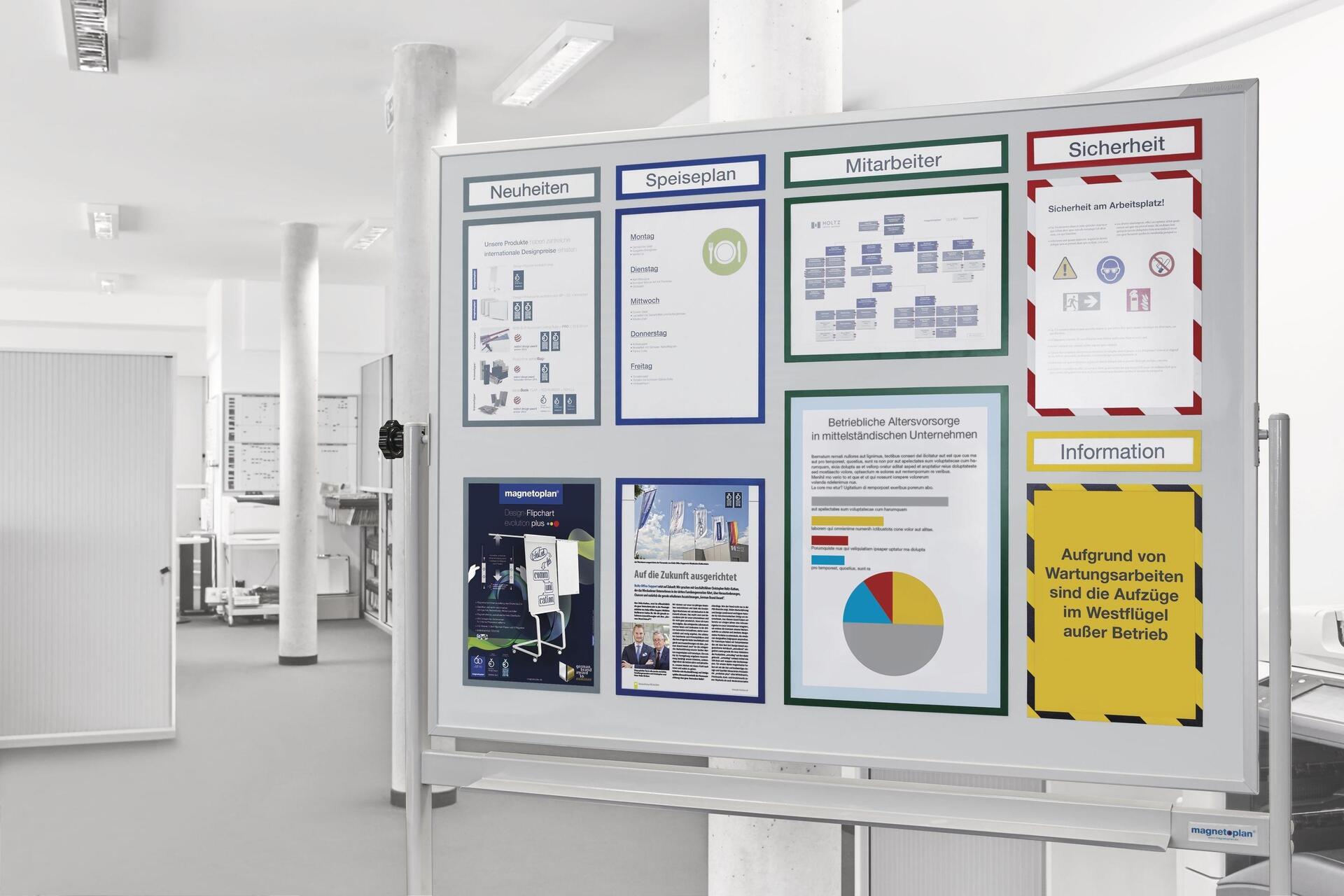 Farbiger Magnetrahmen zum Aushängen betrieblicher Informationen: Für Büro, Lager + Fertigung, ideal auch für TQM-Infotafeln.