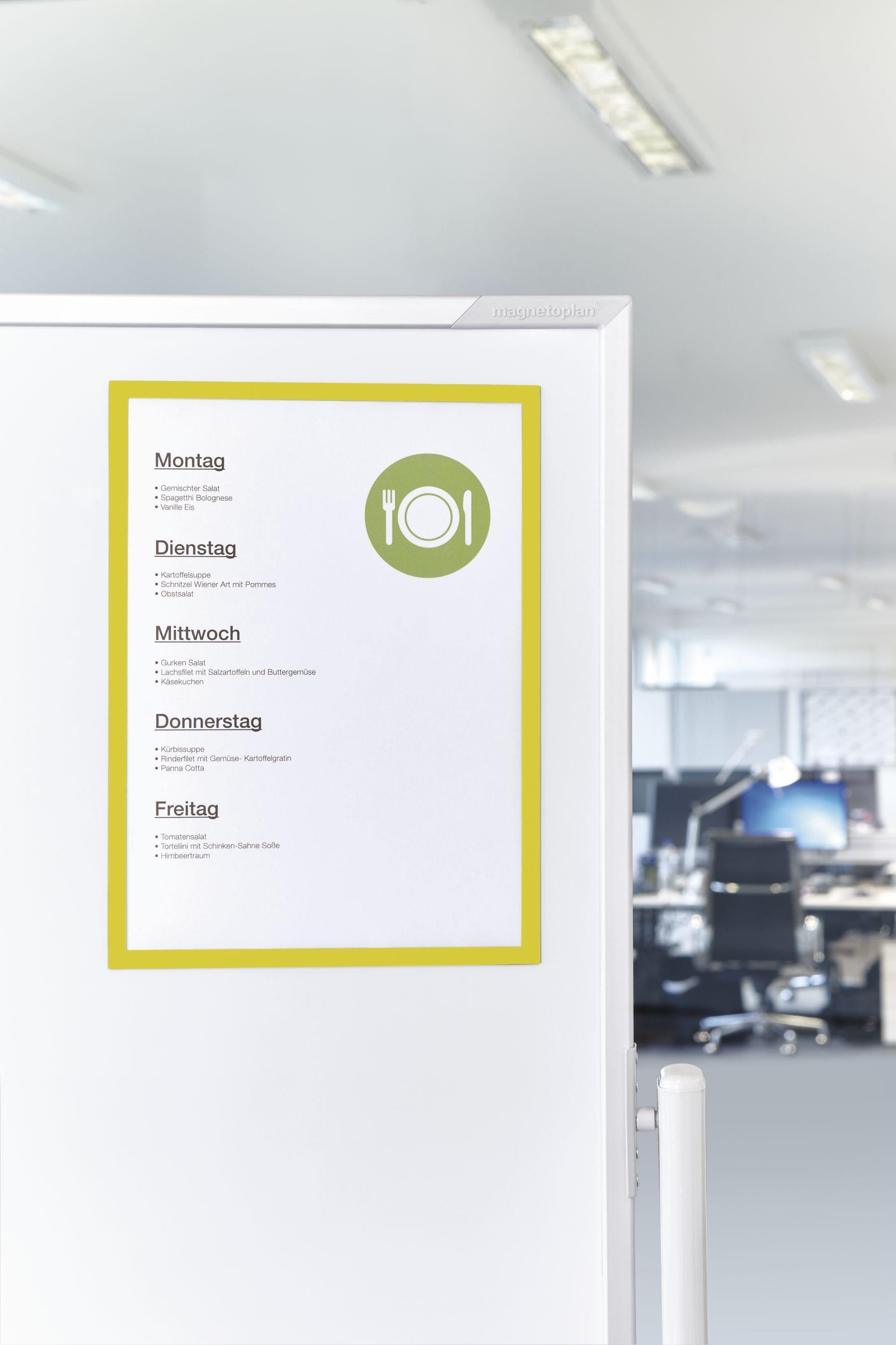 Farbiger Magnetrahmen zum Aushängen betrieblicher Informationen: Für Büro, Lager + Fertigung, ideal auch für TQM-Infotafeln.