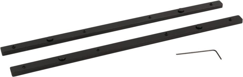 Zwei Verbindungsschienen zum Verbinden von zwei Führungsschienen. Sicherer Halt durch Schrauben, die mit Hilfe eines 6-KT Stiftschlüssels angezogen werden (im Lieferumfang enthalten).