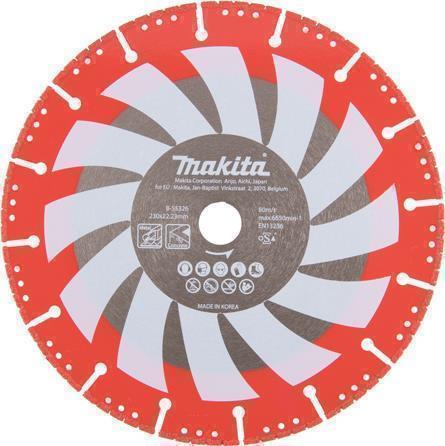 | Produktbeschreibung | Makita Diamant-Schneidscheibe - für Holz, Beton, Kunststoff, Glas, Aluminium, Ziegelsteine, Holz mit Nägeln, nicht eisenhaltiges Metall, Stahl, Kupfer, Porenbeton, Messing, Bronze, Zink |