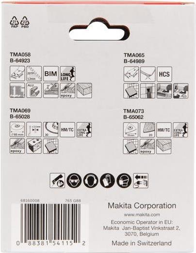 | Produktbeschreibung | Makita Blattset für Multifunktionswerkzeug - für Fliesen, Aluminium, Epoxid - 4 Stücke |