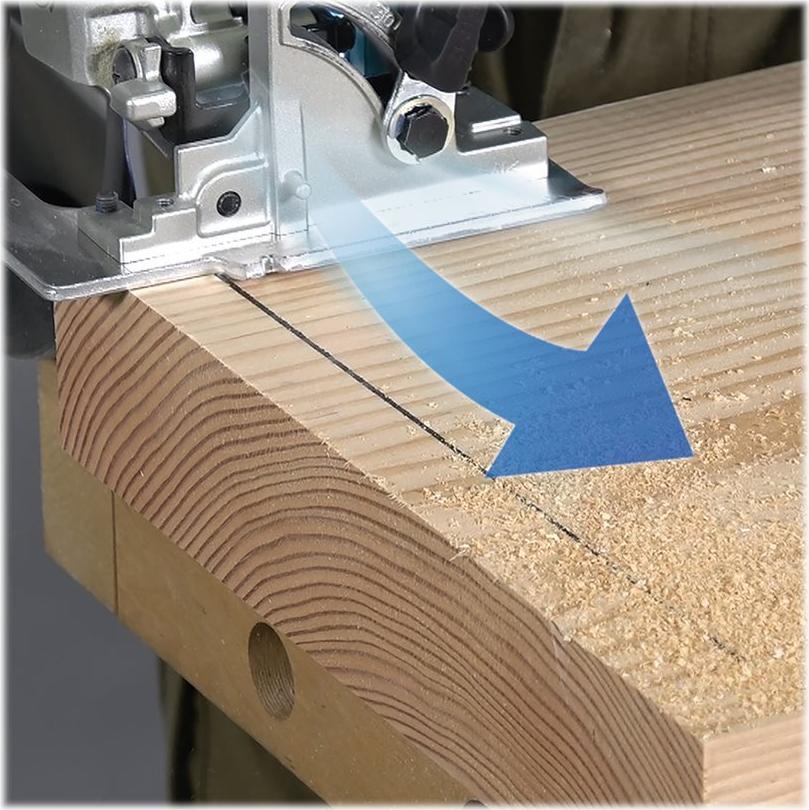 Akku-Handkreissäge mit einer sehr kompakten und kurzen Bauform. Sie ist für Sägeblätter mit 165 mm Durchmesser ausgelegt und erreicht eine max. Schnitttiefe von 57 mm. Die integrierte Blasvorrichtung hält die Schnittstelle sauber, eine leuchtstarke Doppel-LED leuchtet das Werkstück zusätzlich aus. Mit AWS-Technologie zum automatischen Einschalten der Staubabsaugung.