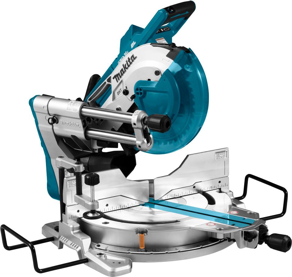 Eine äußerst kraftvolle und schnelle Akku-Kapp- und Gehrungssäge mit einem Dual-Slide-System zum Sägen großer Werkstücke. Der bürstenlose Motor wird angetrieben mit 2 x 18 V Akkus und erreicht damit eine Leistung von 36 V. Ihre Schnittgeschwindigkeit ist mit elektrischen Sägen vergleichbar. Mit AWS zum automatischen Start der Fremdabsaugung.