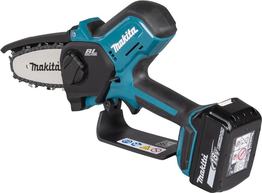 Entdecken Sie die Makita DUC101Z, eine hocheffiziente Kettensäge, die sowohl die Bedürfnisse von Profis als auch von Heimwerkern erfüllt. Dieses kabellose Werkzeug wird von einem 18-V-Lithium-Ionen-Akku angetrieben, der mit einem bürstenlosen Motor gekoppelt ist, um eine zuverlässige und gleichmäßige Schnittleistung für eine Vielzahl von Aufgaben zu gewährleisten. Das kabellose Design bietet Bewegungsfreiheit, so dass Sie in verschiedenen Umgebungen arbeiten können, ohne an ein Stromkabel gebunden zu sein.Bei der DUC101Z geht es nicht nur um Leistung, sondern auch um den Komfort des Benutzers. Der ergonomische Griff und der gummierte Softgrip reduzieren Vibrationen und Ermüdung und erleichtern so das Arbeiten über einen längeren Zeitraum. Das geringe Gewicht der Kettensäge verbessert die Manövrierfähigkeit und Kontrolle. Die Wartung wird durch Funktionen wie die automatische Ketten- und Schienenschmierung und eine sichtbare Ölstandsanzeige erleichtert, so dass das Gerät immer einsatzbereit ist. Eine elektrische Bremse, die die Kette schnell stoppt, und eine staubdichte Konstruktion, die die internen Mechanismen vor Verschmutzung schützt, machen die Sicherheit zur Priorität. Ob Sie nun Äste trimmen oder Baumstämme durchtrennen, die Makita DUC101Z ist ein zuverlässiger Begleiter für Ihre Aufgaben im Freien.Produkttext[/head]Leichte und kompakte Astsäge zum Ausasten und für KorrekturschnitteNeue werkzeuglose Kettenspannung: Die Kettenspannung ist durch einfaches Lösen und Schließen des Hebels möglich. Der bewegliche Sägekettenschutz gewährleistet mehr Sicherheit. Mit einem Sichtfenster am Öltank zur Kontrolle des Ölstands.[head]Hauptmerkmale