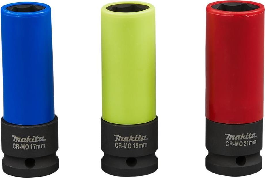 Makita - Kraft-Steckschlüsseleinsatz-Set - 3 Stücke - 1/2" - quadratisch - 17 mm, 19 mm, 21 mm - Länge: 86 mm (E-12354)